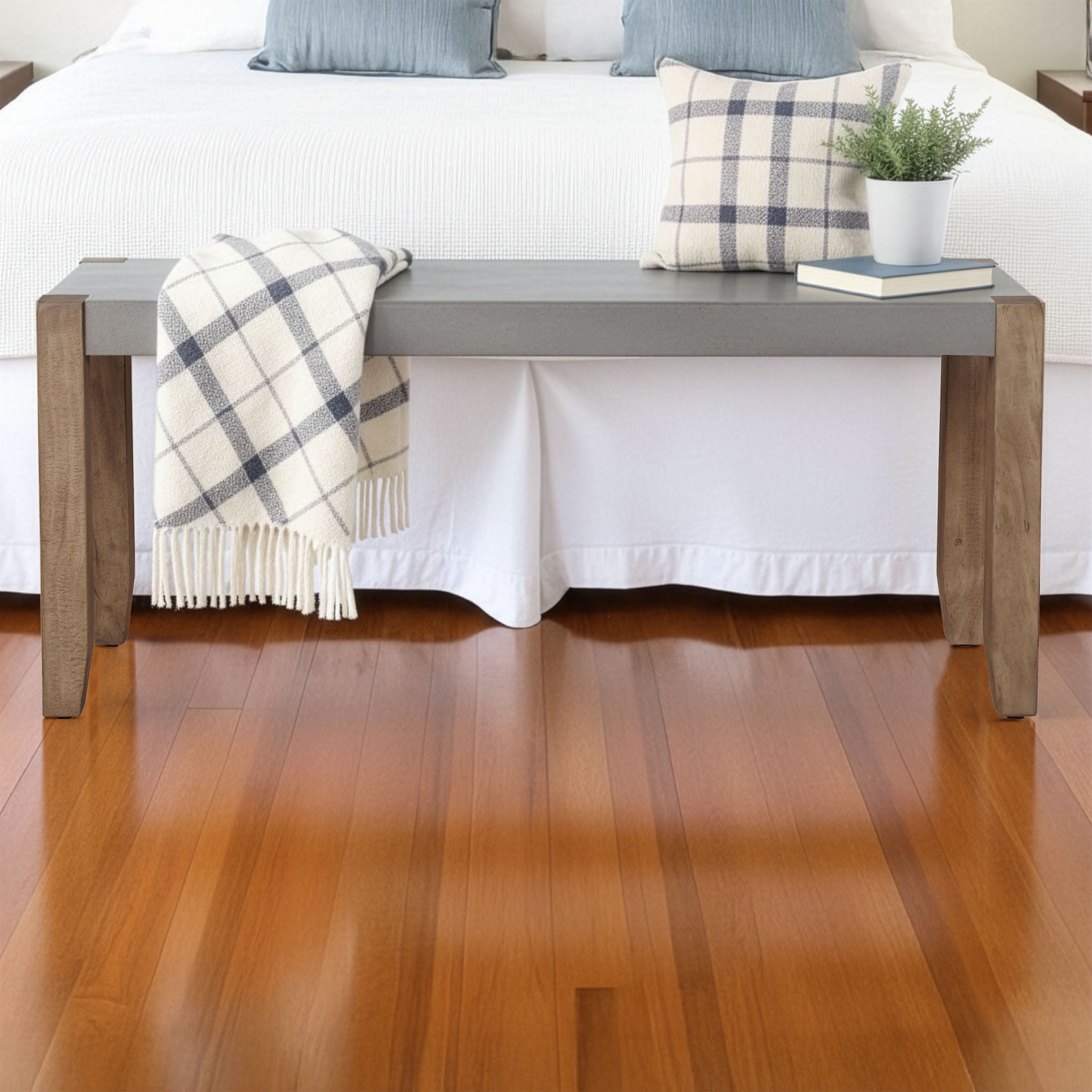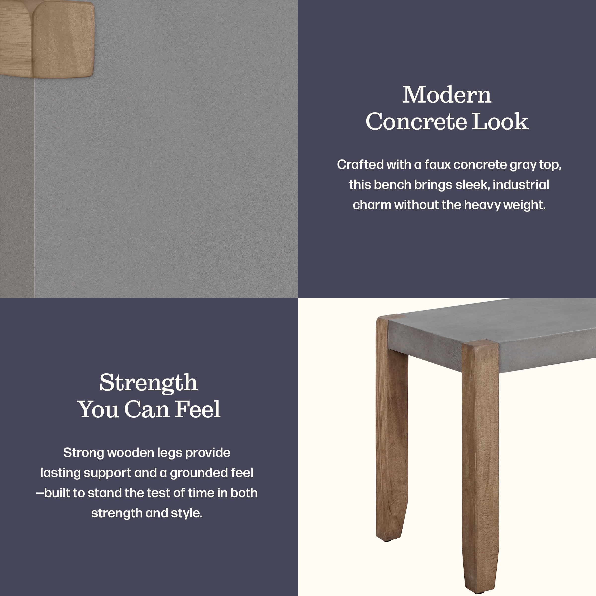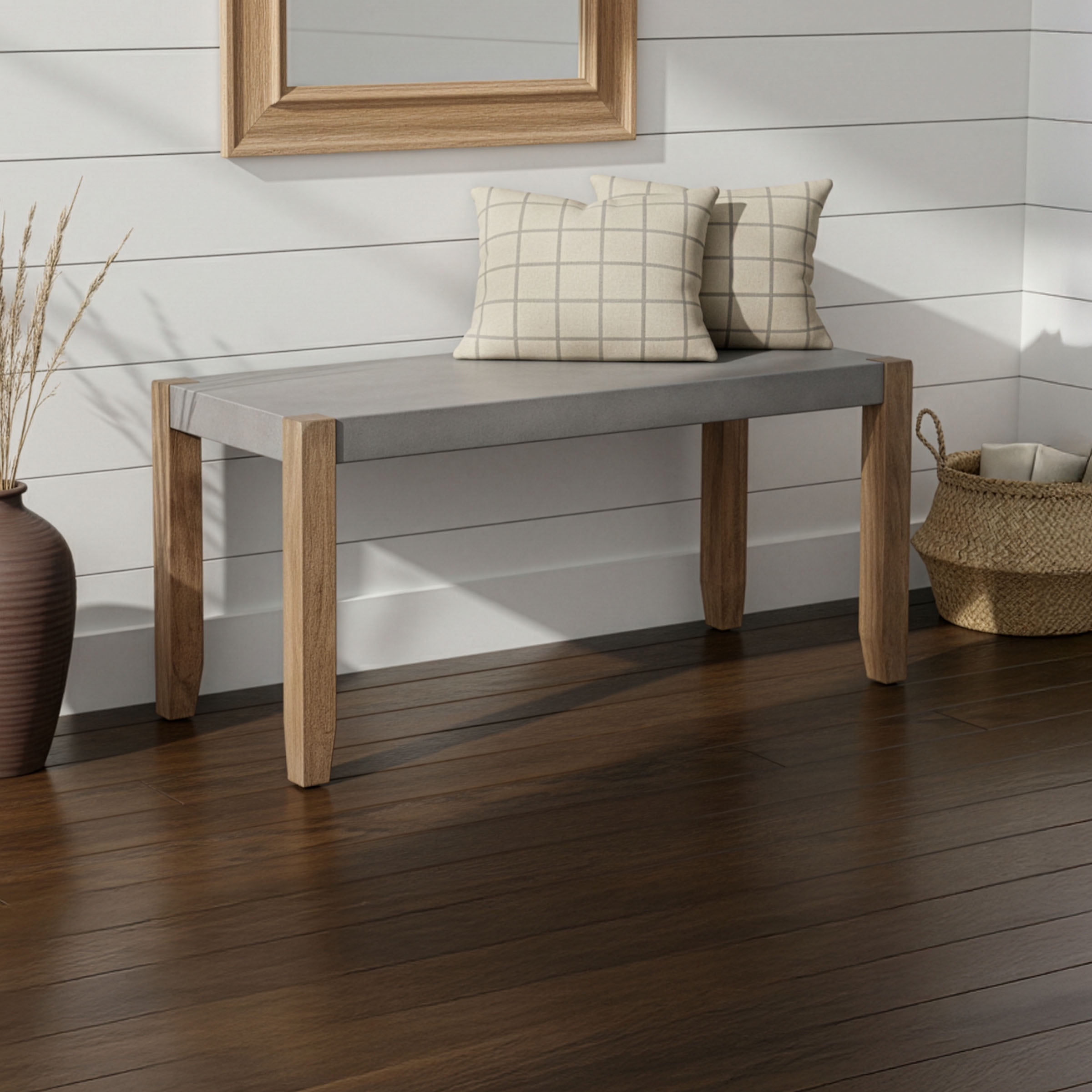 Alaterre Furniture Newport Bench with Faux Concrete Seat and Wood Legs – 40 Inch Entryway Bench with Rustic Industrial Design – Benches for Bedroom, Living Room, Dining Room, and Mudroom