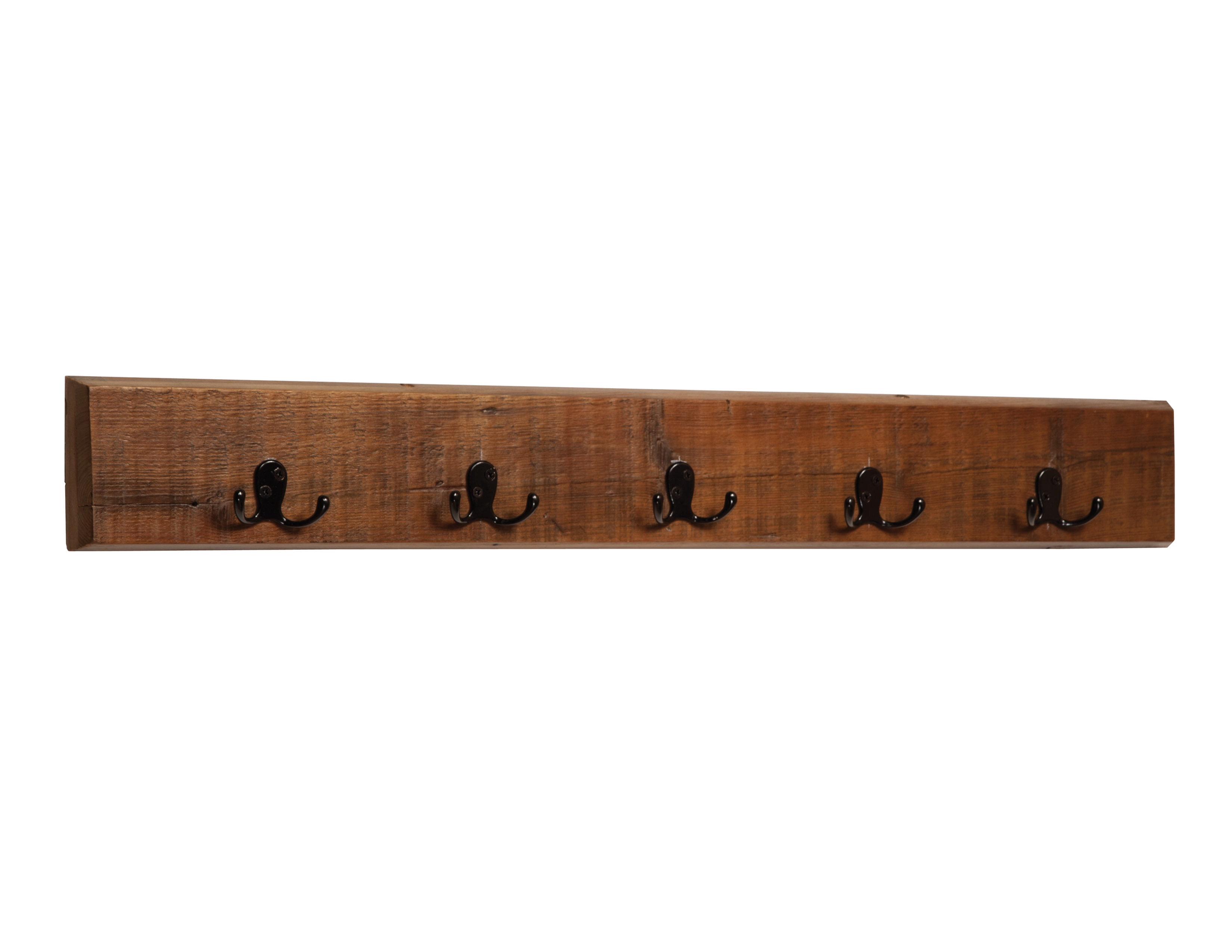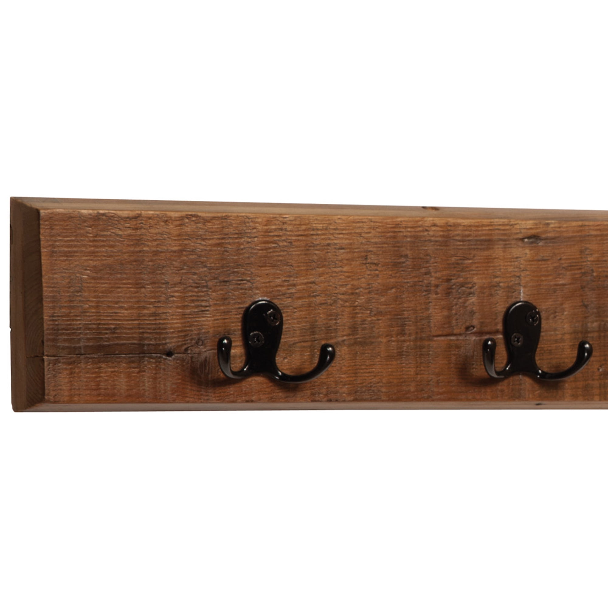 Revive Collection of furniture features handcrafted design and a reduced impact on the environment. Cedar wood wears its history proudly and is long-lasting. The lacquer finish allows each piece to show its natural wood knots, cracks, and grain. Beautiful detailing in the wood is a surprising feature. This coat hook features 4 double hooks that provide plenty of space to hang jackets, coats, or bags.