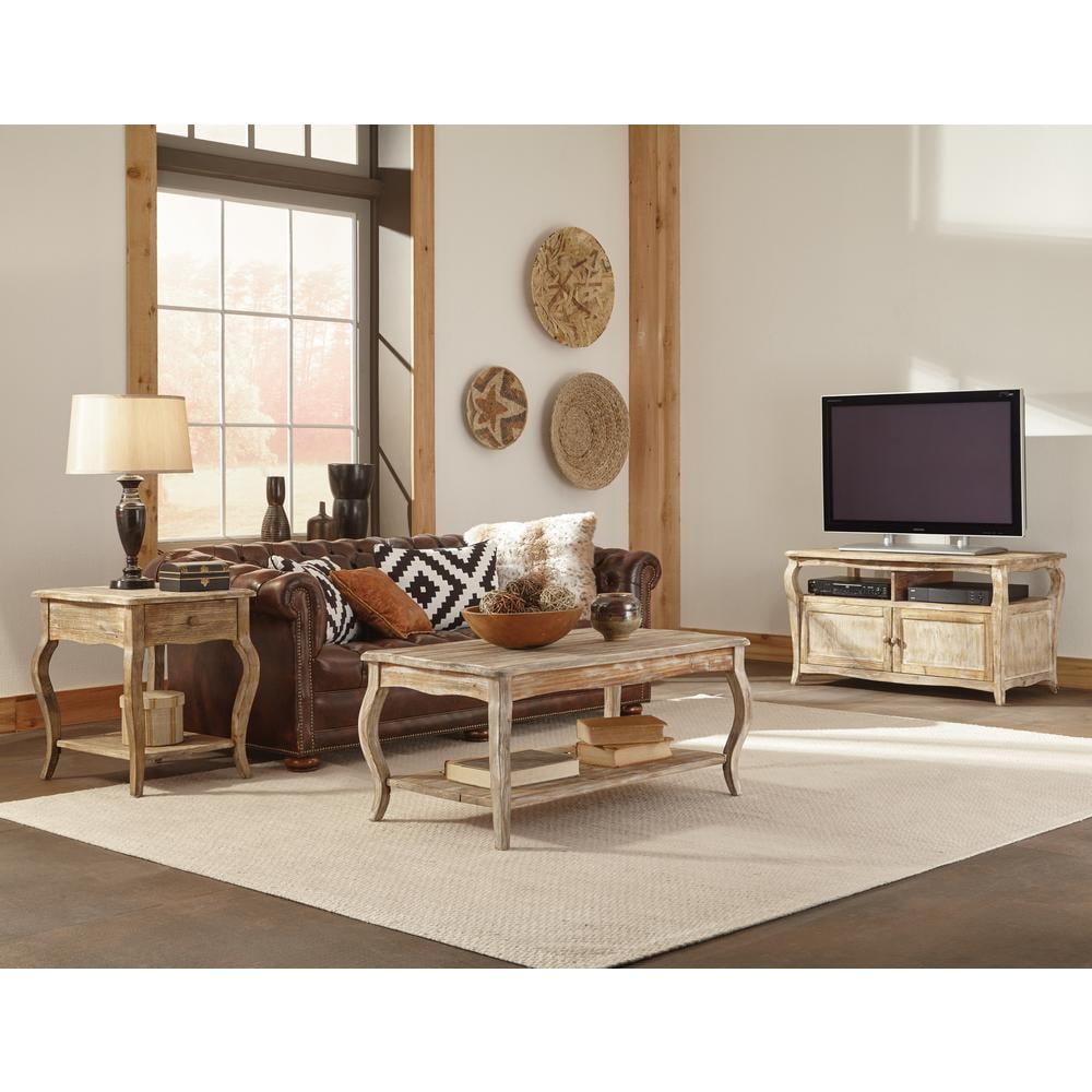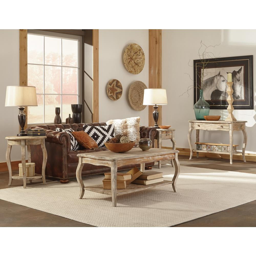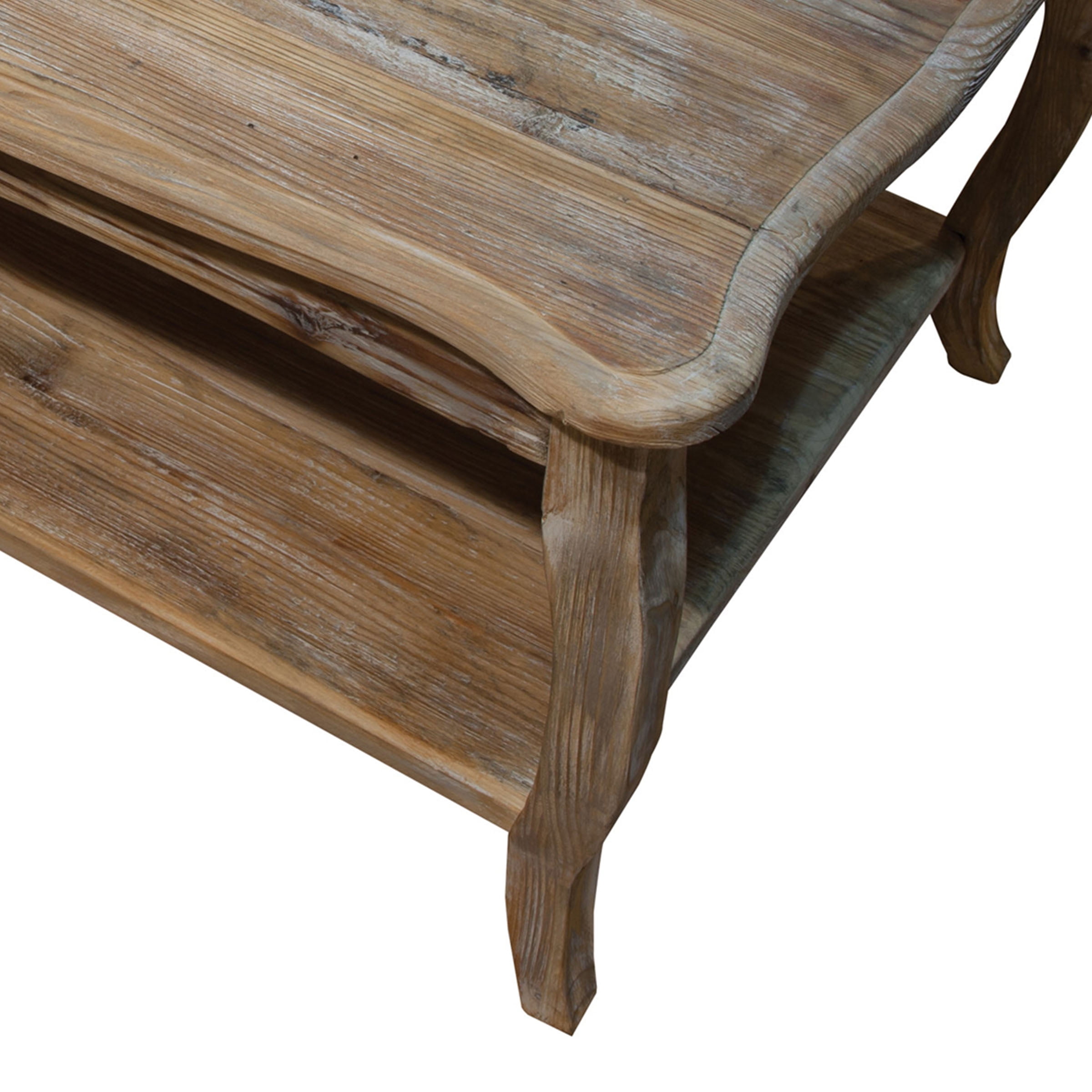 A STORY OF HISTORY – The Rustic Collection of resourced wood furniture features handcrafted design and a reduced impact on the environment FUNCTION AND STYLE – Enjoy this large, rectangular coffee table with shelf that provides a beautiful spot to display your favorite décor items, and curved legs and scalloped edges that provide a stylized look STORAGE SOLUTION – Benefit from the open shelf underneath this coffee table for storing photo albums, books, magazine or other decorative accents ELEGANCE – The Rustic Resourced Wood Coffee Table showcases unique materials with a natural finish, enhancing rustic charm in any living room EASY CARE – Assembly required; wipe clean with a dry cloth