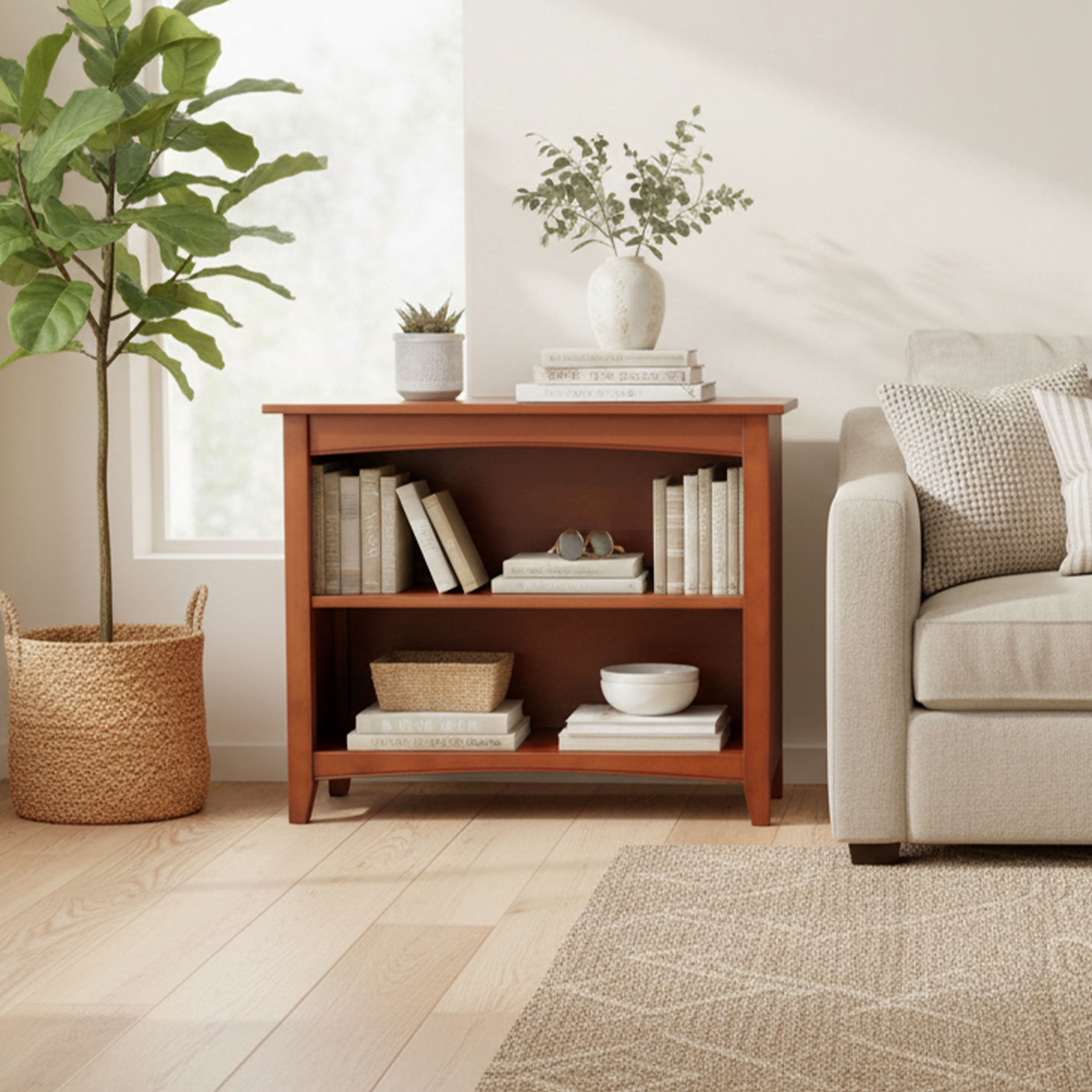 Alaterre Furniture Shaker Cottage 2-Shelf Storage Bookcase, Cherry