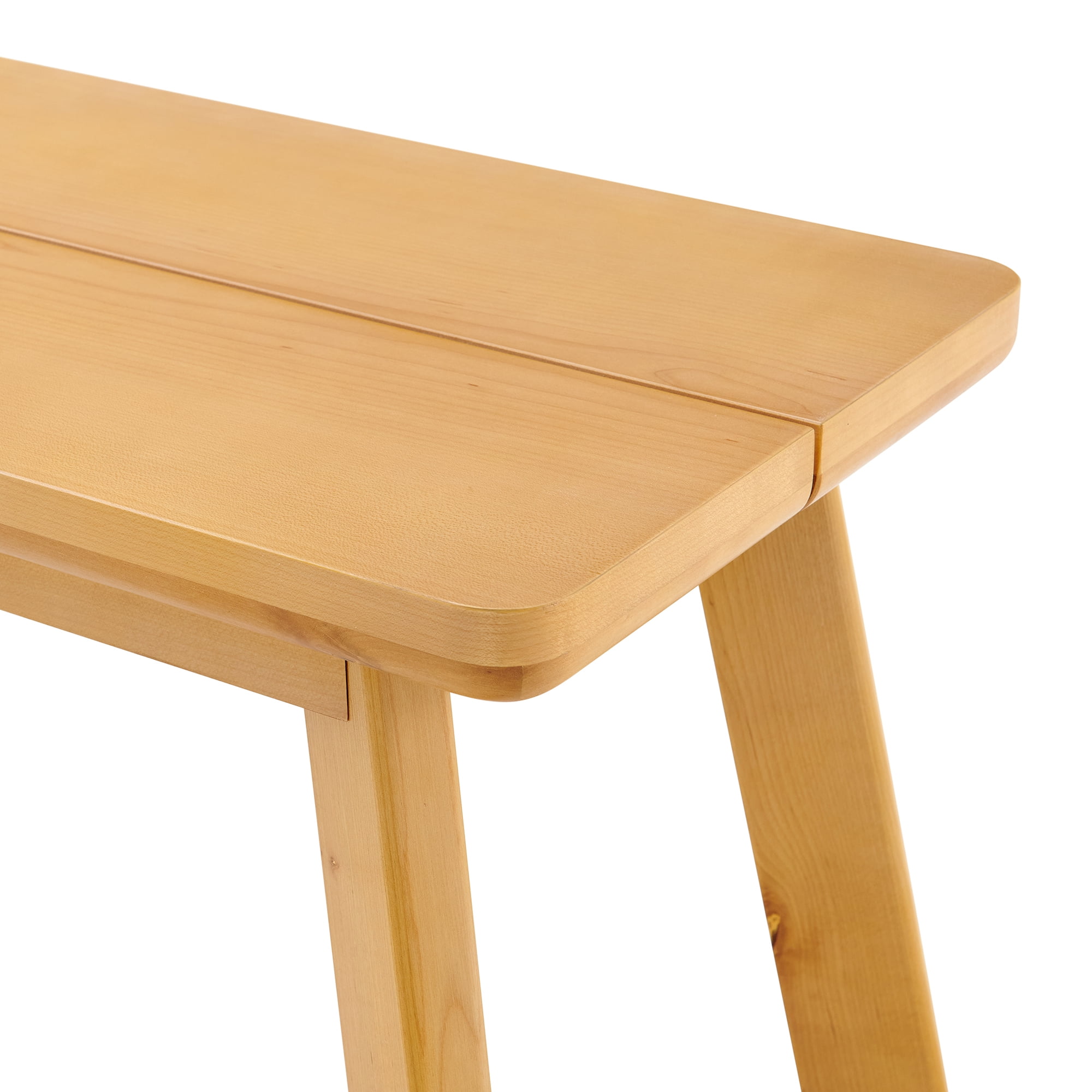 Elevate your dining space with this simple yet stunning dining bench. With smooth lines and a slightly rounded edge, this bench looks beautiful, and allows you to both host and dine with ease. The rounded edges and gently sloping legs blend effortlessly with any decor style. Constructed of solid birch legs, composite wood and maple veneer. Pair this with our coordinating table to give your home a warm, inviting vibe.
