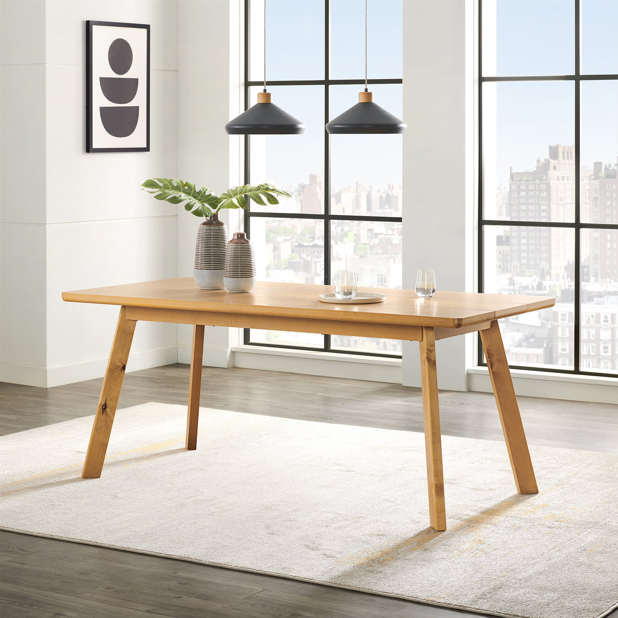 Anchor your dining room or eat-in kitchen with this stunning rectangle dining table. With smooth lines and a slightly rounded edge, this table looks beautiful, and allows you to both host and dine with ease. The rounded edges and gently sloping legs blend effortlessly with any decor style. Constructed of solid birch legs, composite wood and maple veneer. Pair this rounded rectangular dining table with a matching bench or coordinating chairs to give your home a warm, inviting vibe.