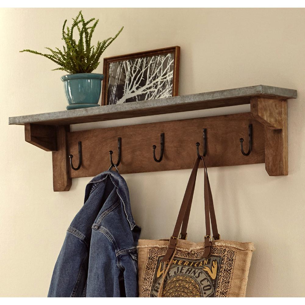Alaterre Millwork 40″ Hook Shelf – Wood/Zinc