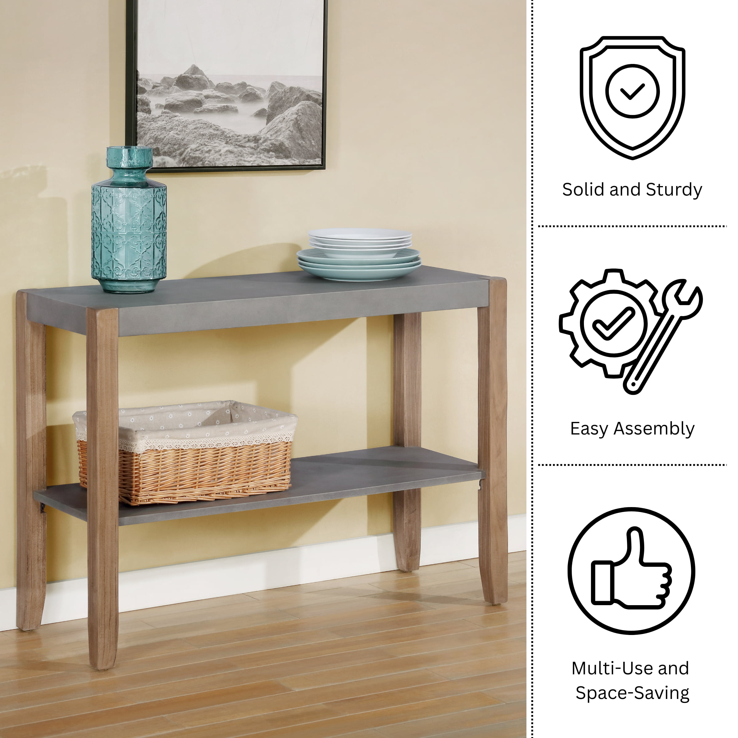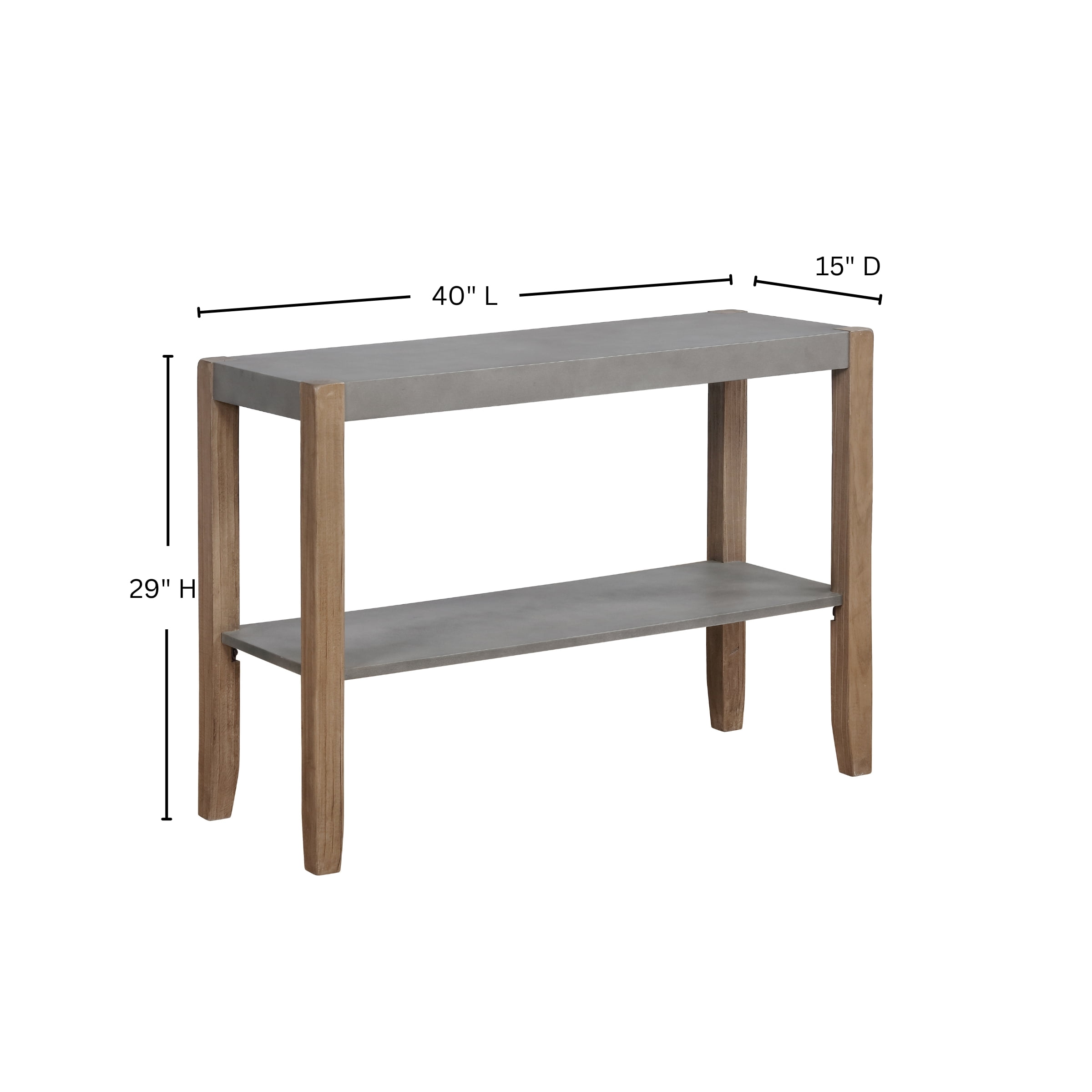 [STYLISH FEATURES] Clean lines and mixed materials for a rustic industrial look create a modern mix; Faux concrete gray top with light amber wood for a timeless style [SPACE SAVING] Maximize media and entryway use at 40″L x 15″D x 29″H; Shelf size: 36″L x 11″D x 15″H [EASY INSTALLATION] Easy assembly with instructions included; Distance from floor to bottom of shelf: 11″H [MODERN VERSATILITY] Perfectly sized at 40″ L x 15″ D x 29″ H; ideal for living rooms, entryways, or as a media stand; lower shelf offers additional space at 36″ L x 11″ D x 15″ H; seamlessly blends with any decor from rustic to contemporary [LUXURY QUALITY] Crafted with durability and solid sustainability to bring luxury feel to your home