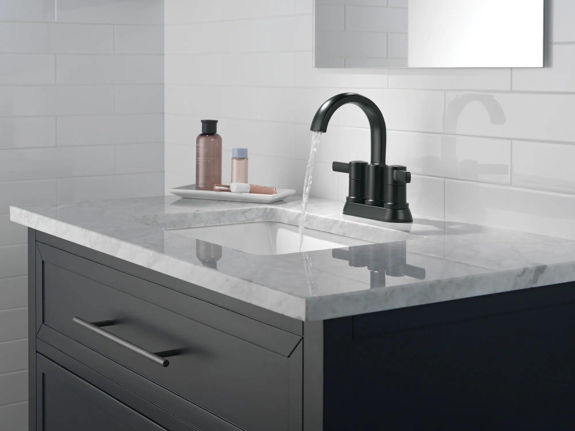 Inspired by modern architecture, the Albion™ Collection brings dimensional style to your bath with a soft touch of curves rooted in angular geometries. Delta® WaterSense® labeled faucets use at least 20% less water than the industry standard — helping you save water without compromising performance. You can install with confidence, knowing Delta faucets are backed by our Lifetime Limited Warranty and highly-trained customer service team.
