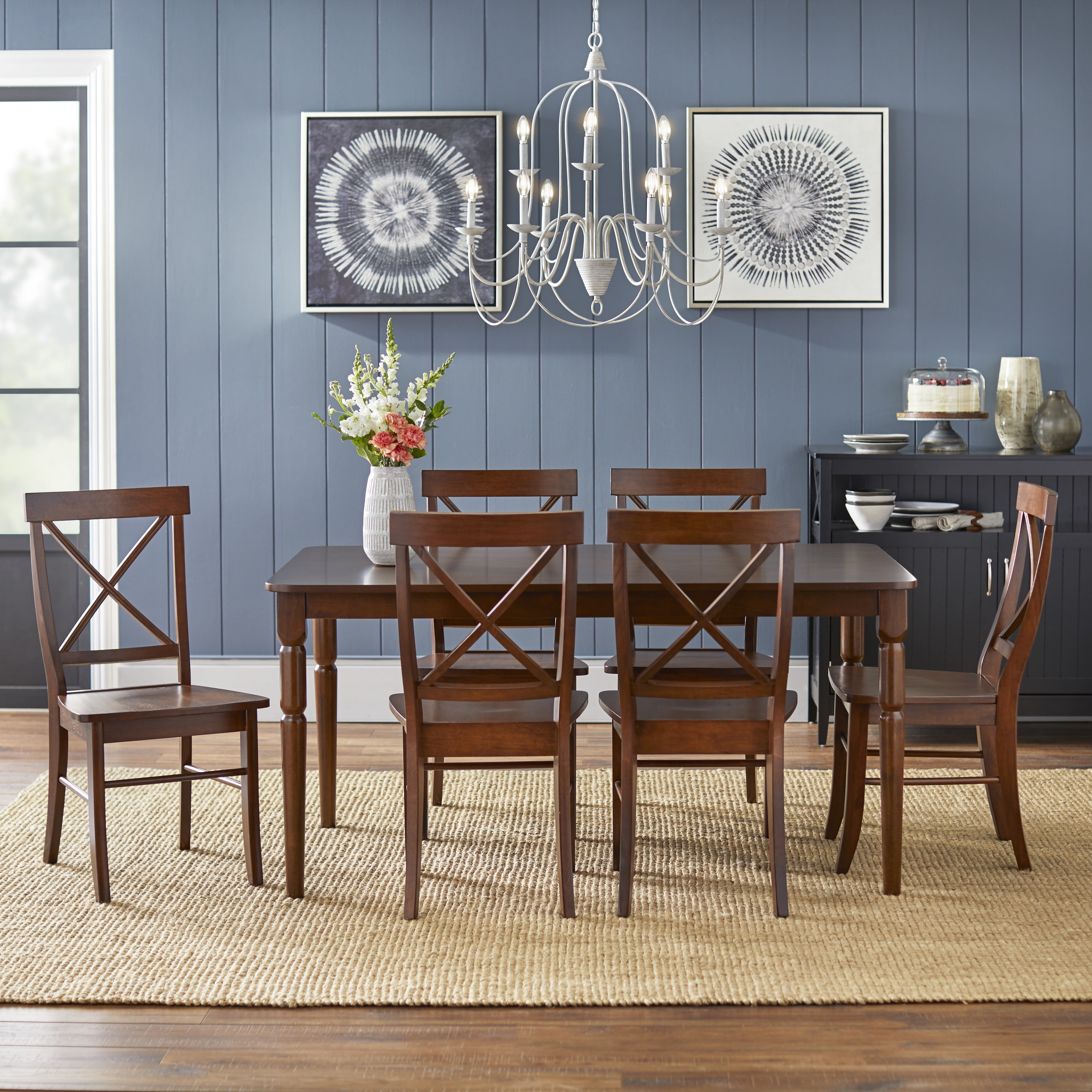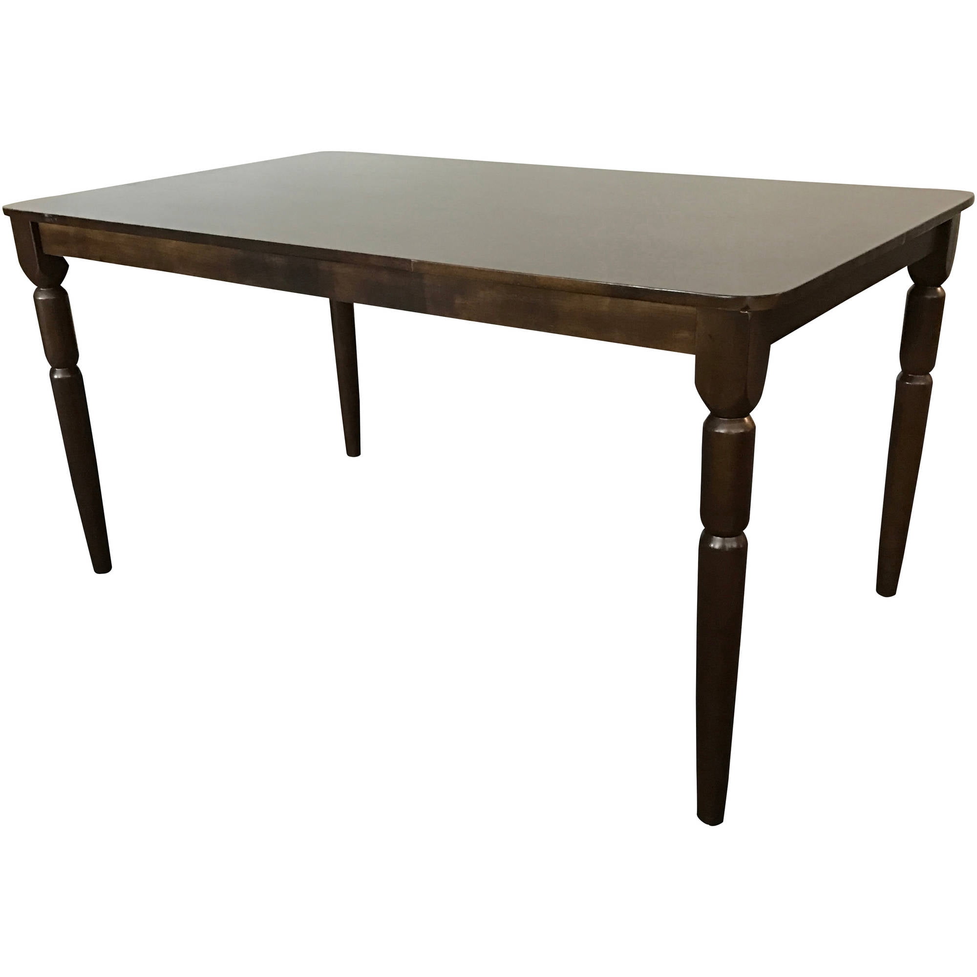Includes One (1) Dining Table Features: Rectangular shaped top, turned legs Finish: Brown Materials: Tabletop constructed of MDF with veneer and solid rubberwood legs Style: Farmhouse Table dimensions: 29.5 inches high x 35.5 inches wide x 59 inches long Assembly Required