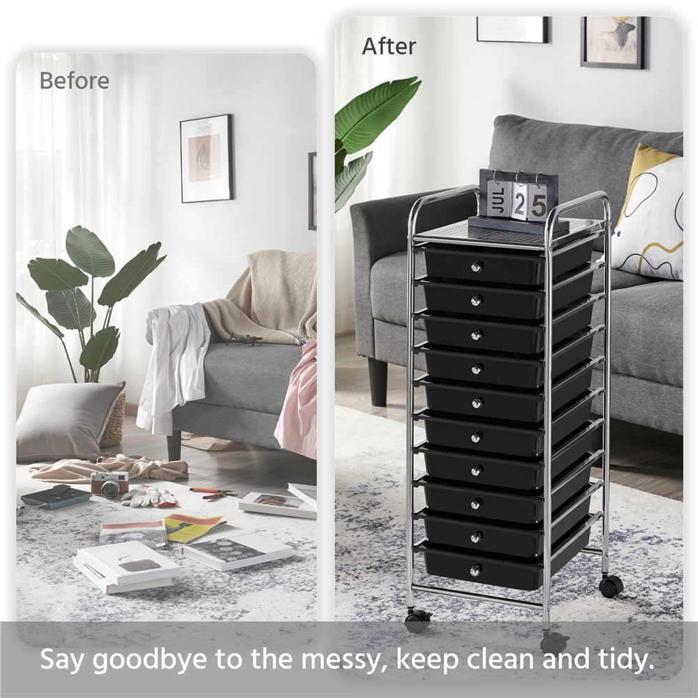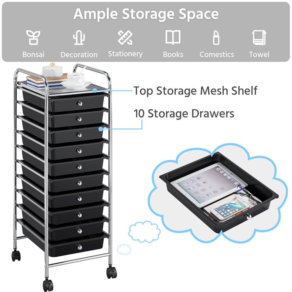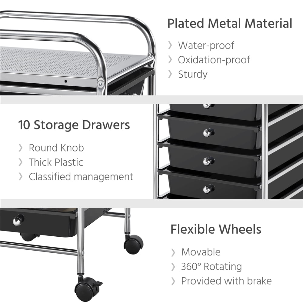 Alden Design 10 Drawer Rolling Storage Cart Organizer with Lockable Wheels, Black