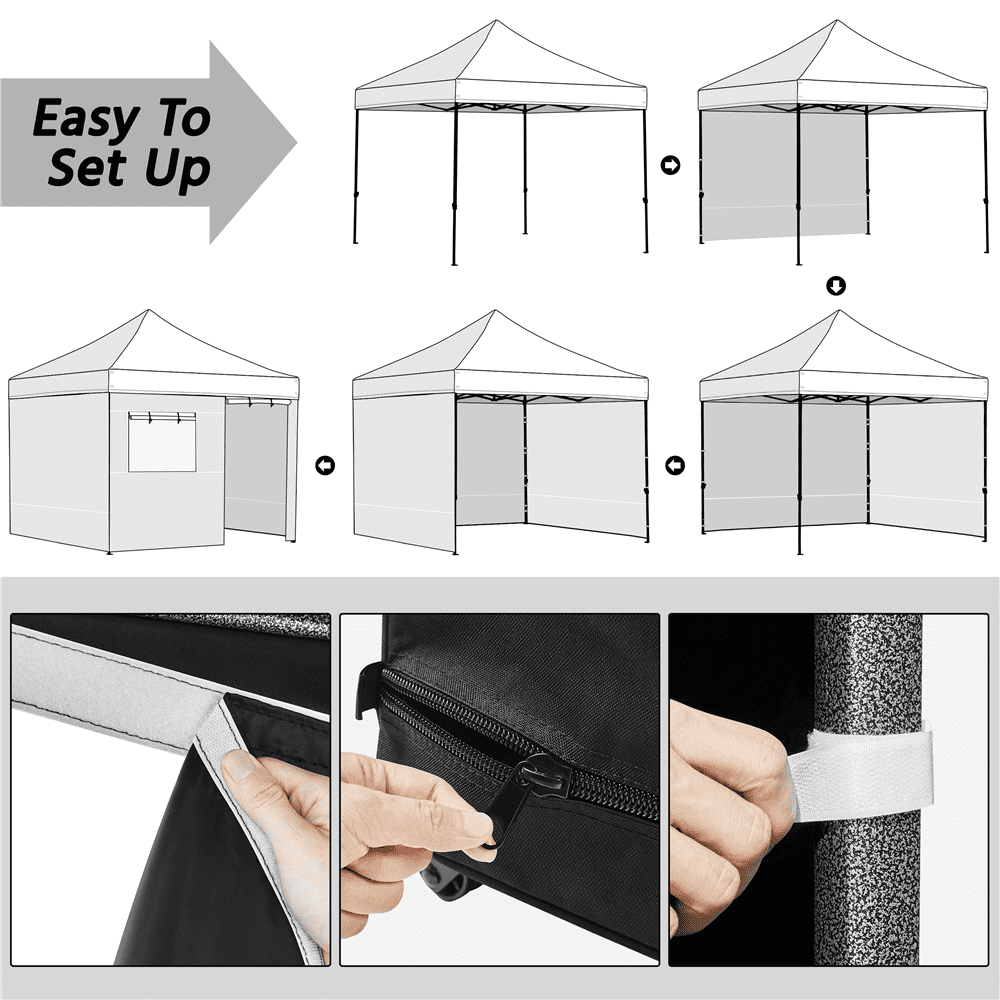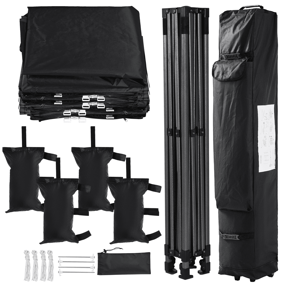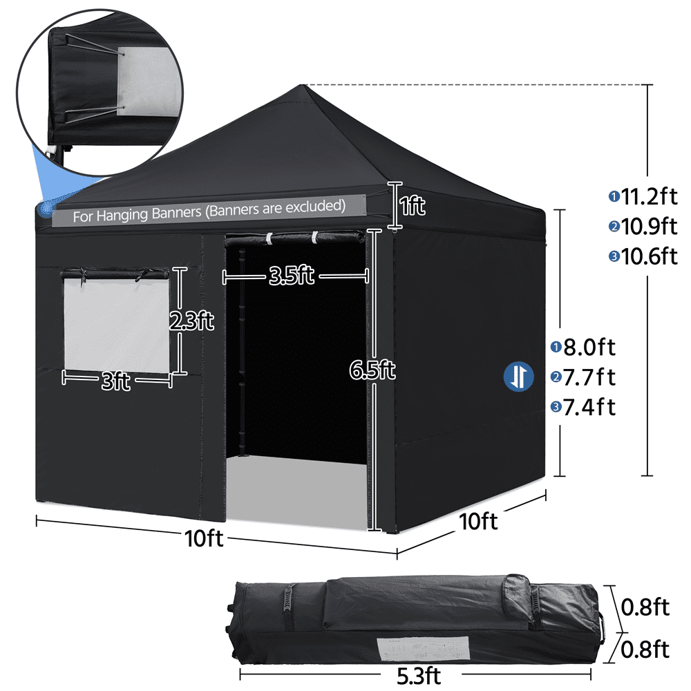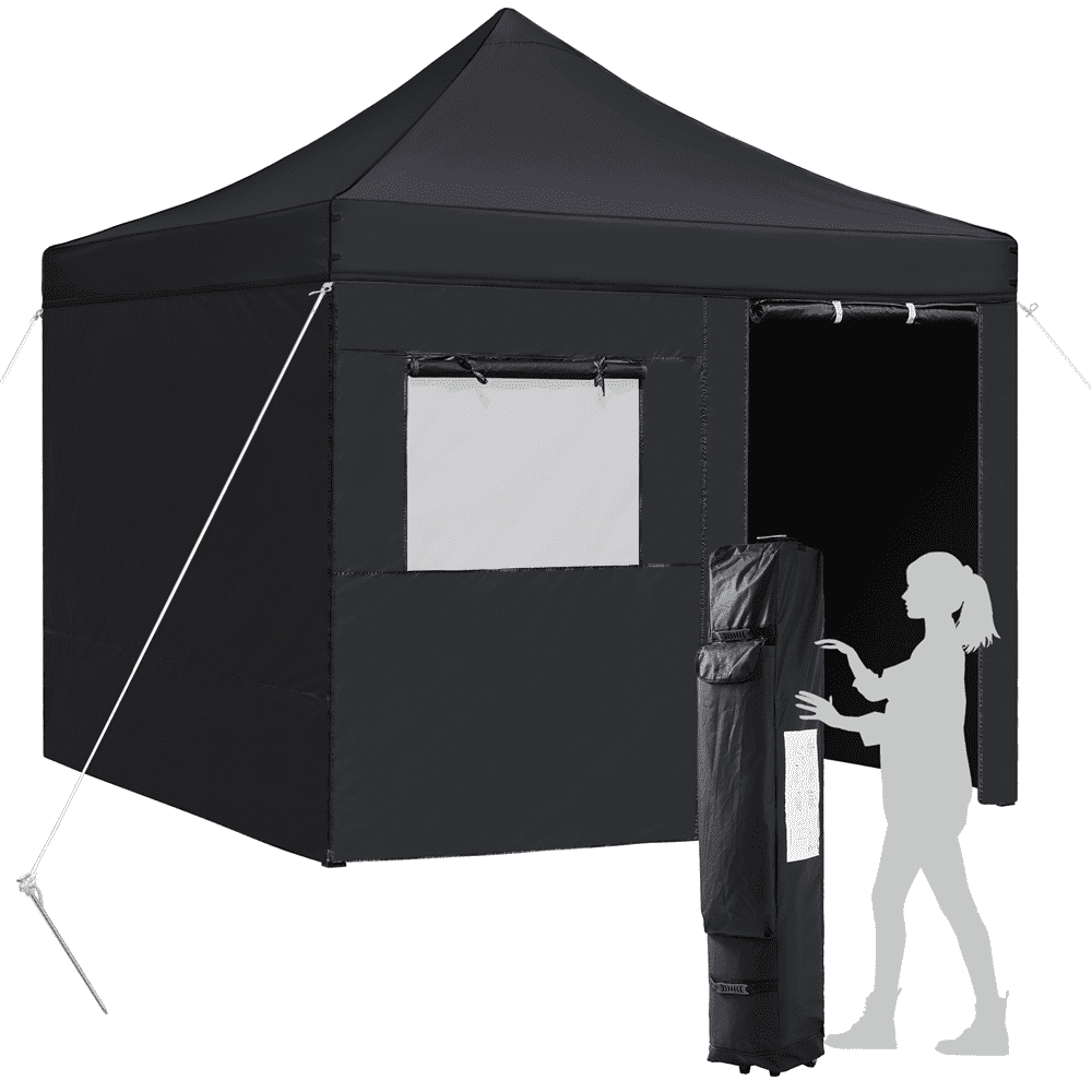 This waterproof and sunproof canopy adopts selected materials for long-term service life. The height is adjustable; the sidewalls are removable as you wish. For professional use, we offer matching stakes, ropes, sandbags and a wheeled bag for the easy pack. Do not worry about the installation. The illustrated instructions will guide you through the installation.Enclosure with a mesh window: This commercial canopy has fully-enclosed sidewalls and one of them has a mesh window. This mesh window provides you with adequate light, ventilation and scenery. Sunproof, waterproof and away from mosquitoes, this large canopy will be a safe and nice shade when you go camping with your family. Adjustable height: The height of this commercial canopy is changeable according to your needs. You can adjust the steel legs from 227cm/89.5inch to 245cm/96.5inch. Durable selected materials: The top of the canopy is made from 500D oxford cloth with PU coating and UV 50, waterproof and sunproof. The whole canopy is supported by a steel frame. The selected materials aim to offer you a long-time service life. Illustrated instructions: For your convenience, we have illustrated instructions along with the product. Plus, we provide four stakes, four ropes, four sandbags, and a carrying bag. If you have any problems and questions, please do not hesitate to contact us. Choose us, choose a comfortable life. Easy carrying: It is easy to fold and unfold the commercial canopy. You can pack the canopy into the accompanying carrying bag for easy storage and transit. The wheeled bag has two wheels, a handle and a small bag, very convenient. Please note: The canopy should be reinforced and fixed with stakes and sandbags to prevent it from being blown down. For safety, please do not use it in bad weather. It needs two or more persons for installation. Stable structure: The mainframe is steel; there are footpads at the bottom, through which you can fix the stakes to keep the canopy stable. We offer four matching stakes with the package, and also four ropes, four sandbags and a wheeled carry bag. Banner hanging: Four corners with metal rings are for the installation of the ropes. The short sides of the front have belts for hanging banners. Make your market stall eye-catching with a banner. This is very thoughtful and useful for commercial use, isn’t it? (Banner is not included.) Removable sidewalls: This commercial canopy has detachable sidewalls so that you can both own a fully-enclosed canopy and a simple gazebo as you need. The sidewalls are attached to the top and mainframe by the hook & loop fasteners, zippers and ropes, very convenient to take off and put up. Package includes: A steel canopy frame, a canopy top, four removable sidewalls with a mesh window, a wheeled bag, four sandbags, four ropes, four stakes, and an illustrated instructions. If you have any problems, please feel free to contact us for assistance. Your satisfaction is always our pursuit.