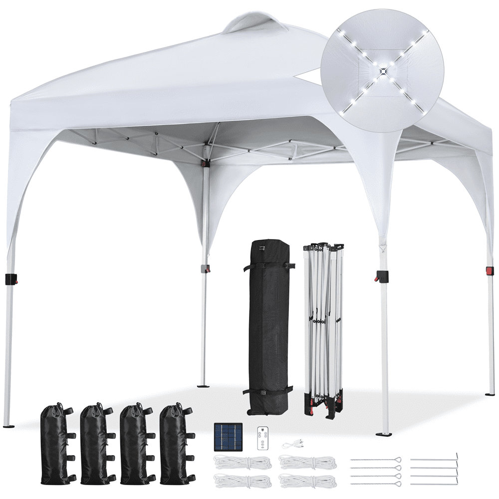 Alden Design 10 × 10 ft Portable Pop-up Canopy Tent with 17 Solar LED Lights for Home & Commercial Use, White