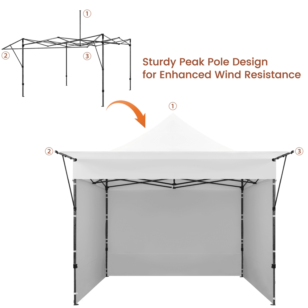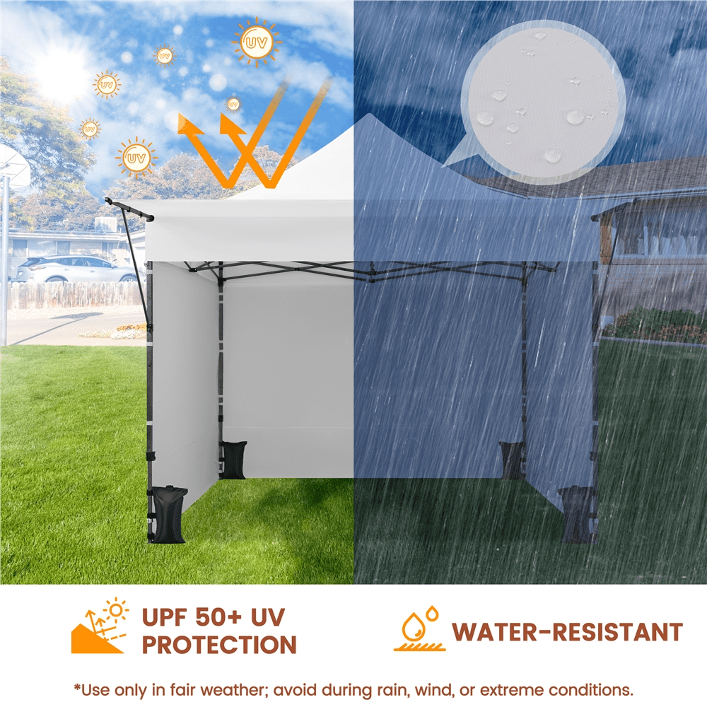 Alden Design 10ft Commercial Pop-up Canopy W/ 3 Sidewalls & Adjustable Awning for Outdoor, White