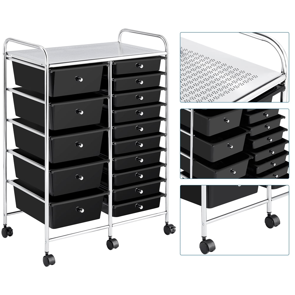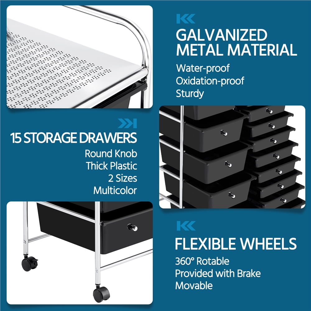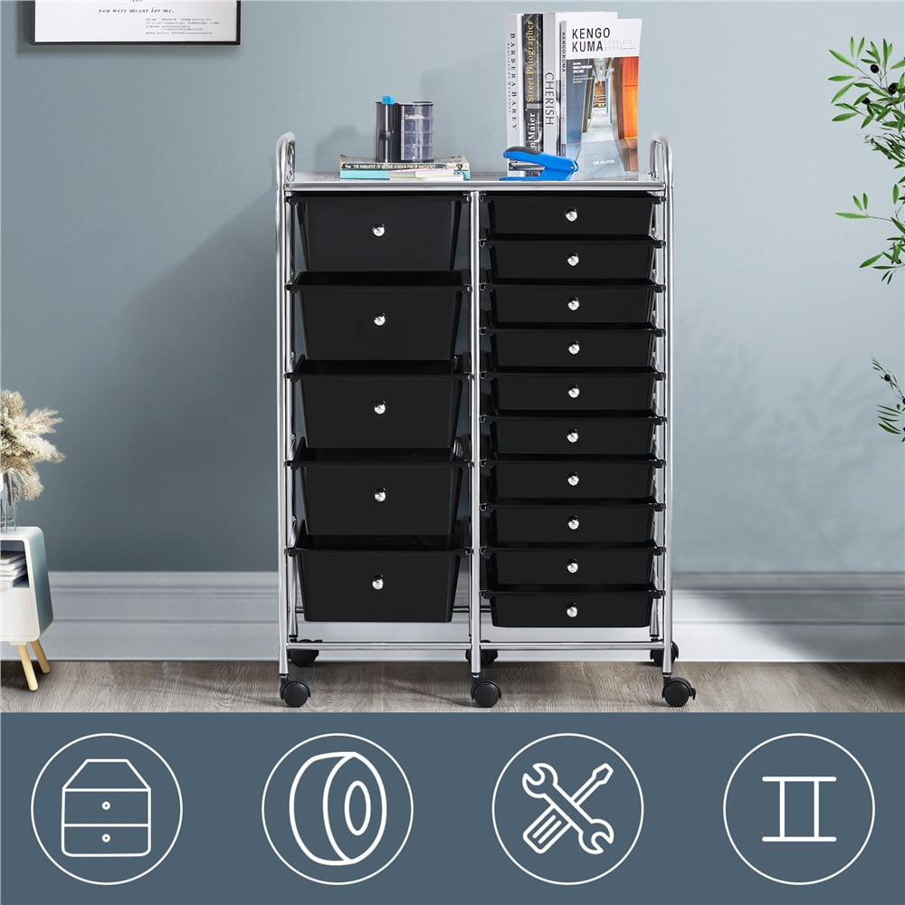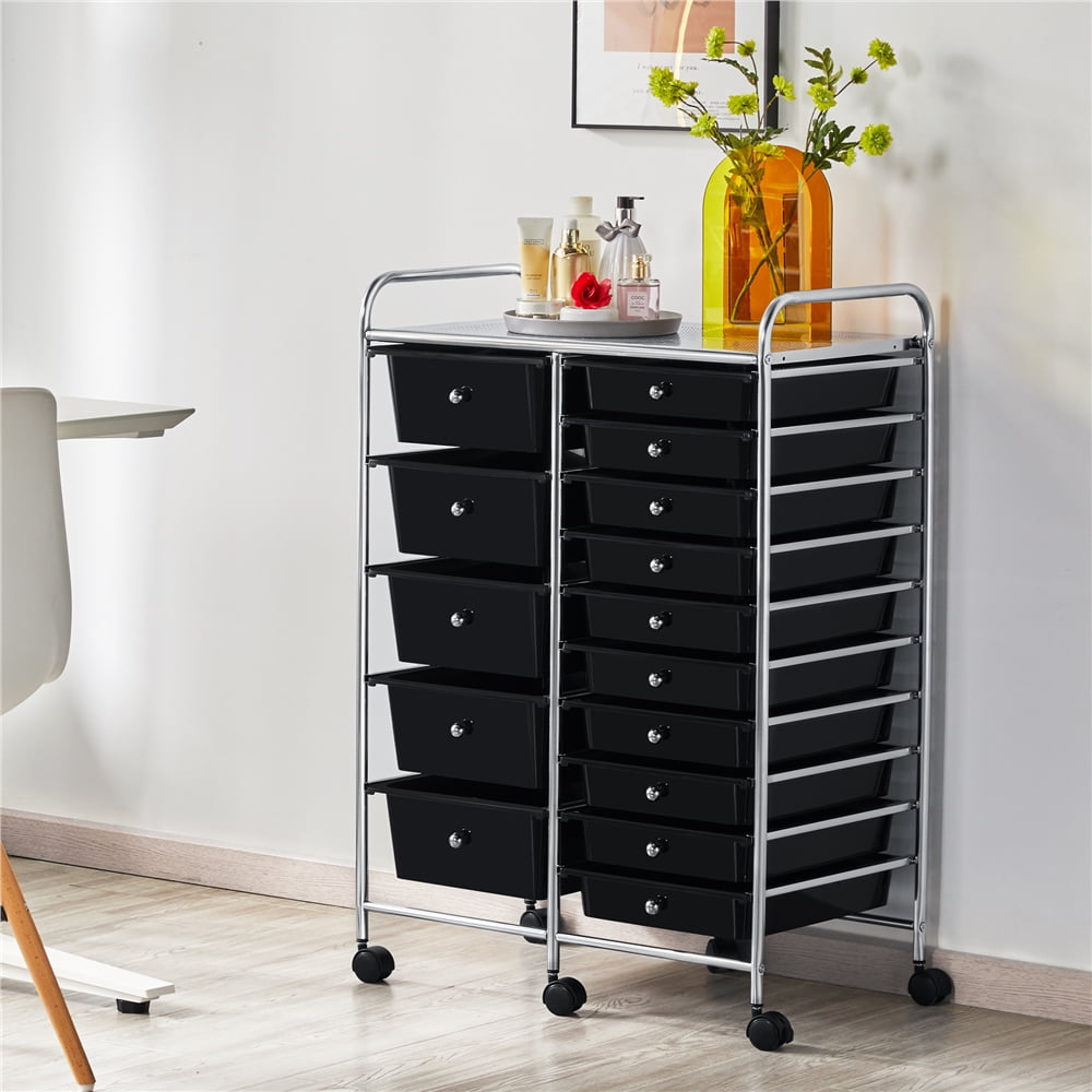 Alden Design 15 Drawers Metal Frame Storage Cart, with Lockable Wheels, Black