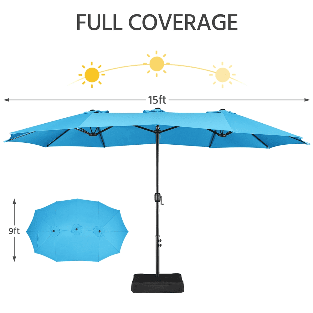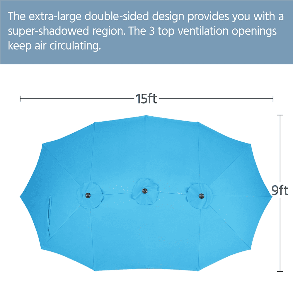 Alden Design 15 ft Patio Parasol Twin-size Large Umbrella 3-Layer, Sky Blue