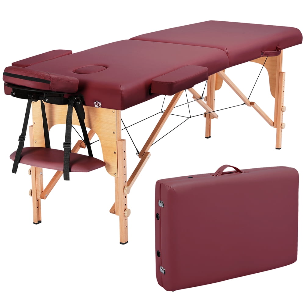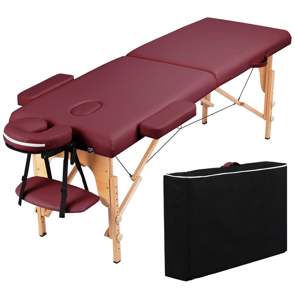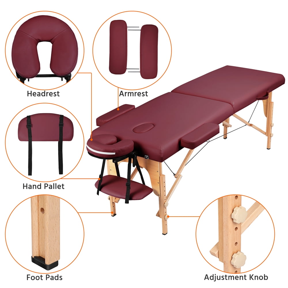 Alden Design 2-fold Adjustable, Foldable Beech Wood Leg Composite Board Cushion Massage Table 84″ Alden Design 2fold Adjustable, Foldable Beech Wood Leg Composite Board Cushion Massage Table 84″ Burgundy Materials: Beech wood legs, composite board, and cushion (plywood, nonwoven fabrics, PVC) Color: Burgundy Unfolded Size: 213 x 82 x 6485.5 cm (84 x 32.3 x 25.233.7 inches) (L x W x H) Folding Size: 92.5 x 60 x 18.5 cm (36.4 x 23.6 x 7.3 inches) (L x W x H) Headrest Size: 28 x 26.5 x 7.2 cm (11 x 10.4 x 3 inches) (L x W x H) Armrest Size: 35 x 11 x 5 cm (14 x 4.3 x 2 inches) (L x W x H) Foam Thickness: 5 cm (2 inches) Gross Weight: 15 kg (33 lbs)