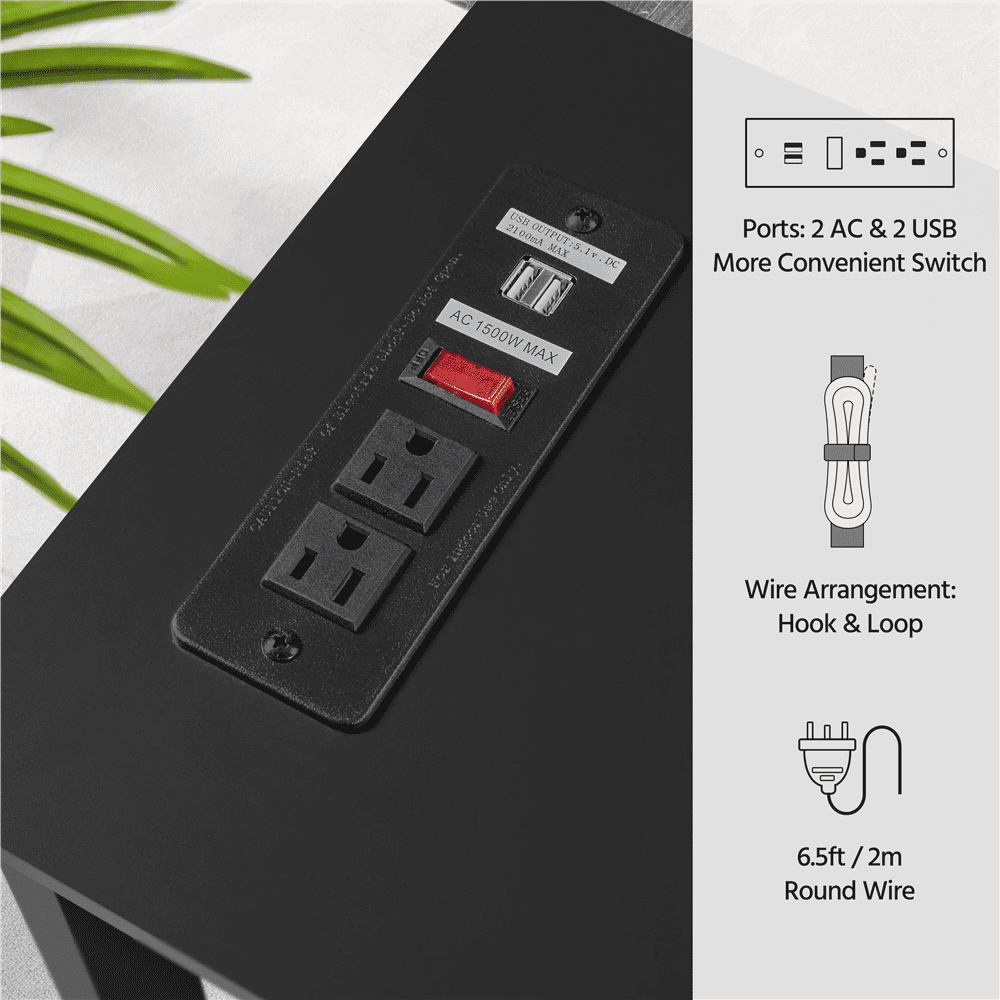 Crafted from Painted MDF: We choose CARB P2 MDF to construct this console table. The painted finish gives the composite wood a smooth feel, along with scratch and water-resistant properties, while maintaining its sturdiness and a natural wood-like look A Very Safe Built-in Outlet: In consideration of the charging requirement of electric appliances, a power outlet is provided. This 6.5 feet long, 1500W power outlet with 2 AC & 2 USB ports, a switch, and a hook & loop, adopts a three-plug and a double-insulated round wire, ensuring you enjoy convenience while staying safe. Enhanced Stability: Built for extended durability and improved stability, the 4 legs are constructed from solid wood. What’s more, the X-shaped structures on both sides provide superior support for both the tabletop and bottom shelf. Easy-to-clean: A damp cloth is all you need to refresh the console table. The specially treated coated surface, is smooth and flat, making the entryway table effortless to clean. Specifications: Colour: Black; Materials: MDF, Solid Wood; Overall Dimensions: 40″ L × 32″ H × 11.8″ W; Bottom Shelf: 37.4″ L × 11″ W; Max Weight Capacity: Tabletop: 88 lb; Shelf: 66 lb.