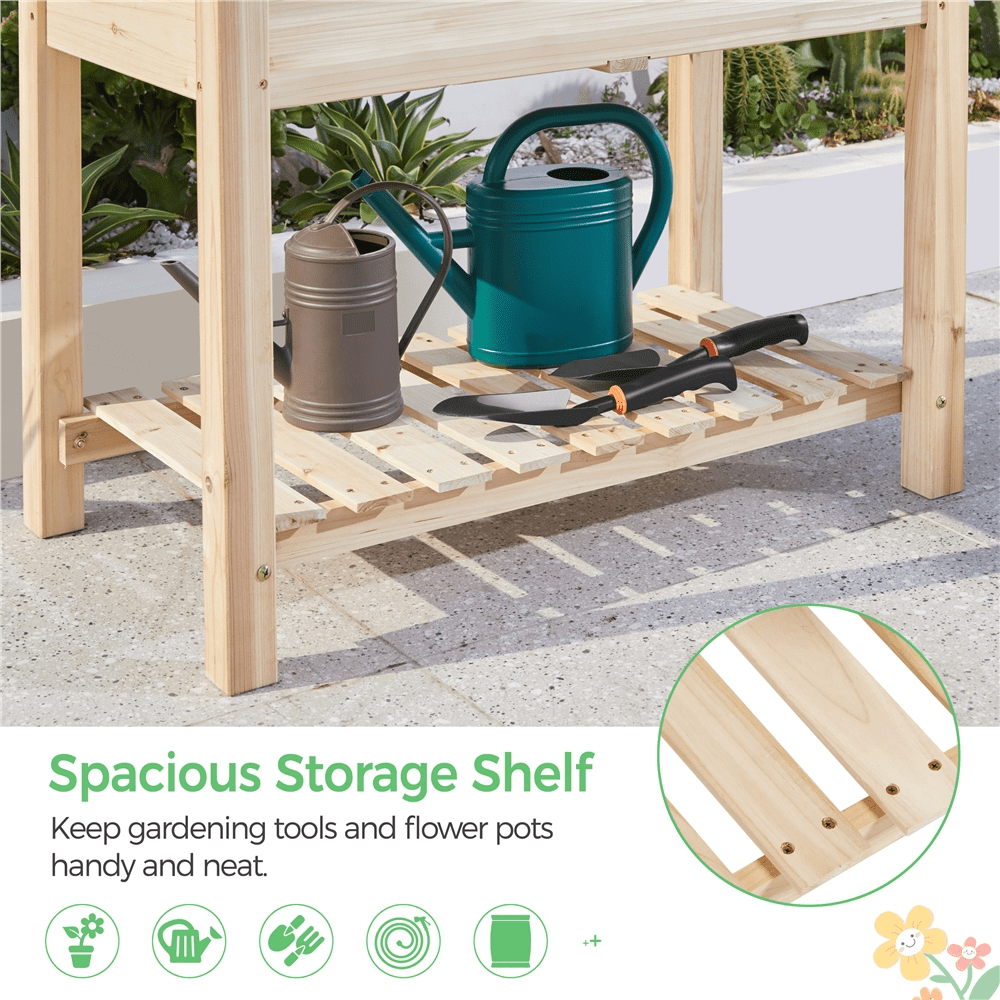 Alden Design 2 Tiers Wooden Raised Garden Bed Elevated Planter Box : Material: Solid wood and metal hardware Overall Size: 86 x 46 x 76 cm/34 x 18 x 30” (L x W x H) Inner Size: 77 x 37.5 x 20.5 cm/30.3 x 15 x 8” (L x W x Depth) G.W.: 10.4 kg/23 lb N.W.: 9.6 kg/21.2 lb Max. Load Bearing: 100 kg/220.5 lb Load Bearing of the Shelf: 30 kg/66.1 lb Note: It is advised that the maximum height of earth is 15 cm/6″. Please do not exceed 15 cm/6″ to avoid overload after watering. Please allow 1-2 cm (0.4-0.8″) error due to manual measurement. Assembly Required Color: Natural