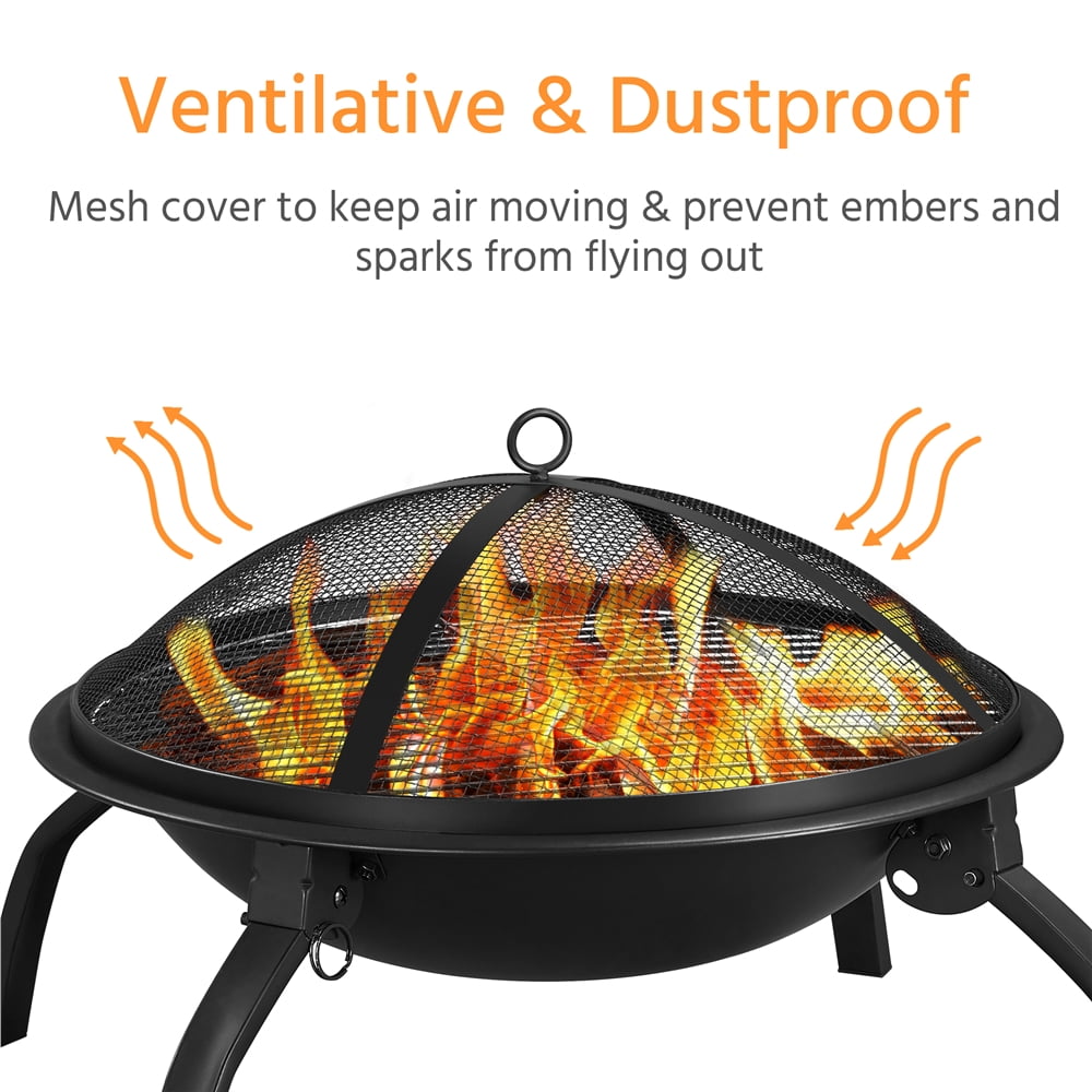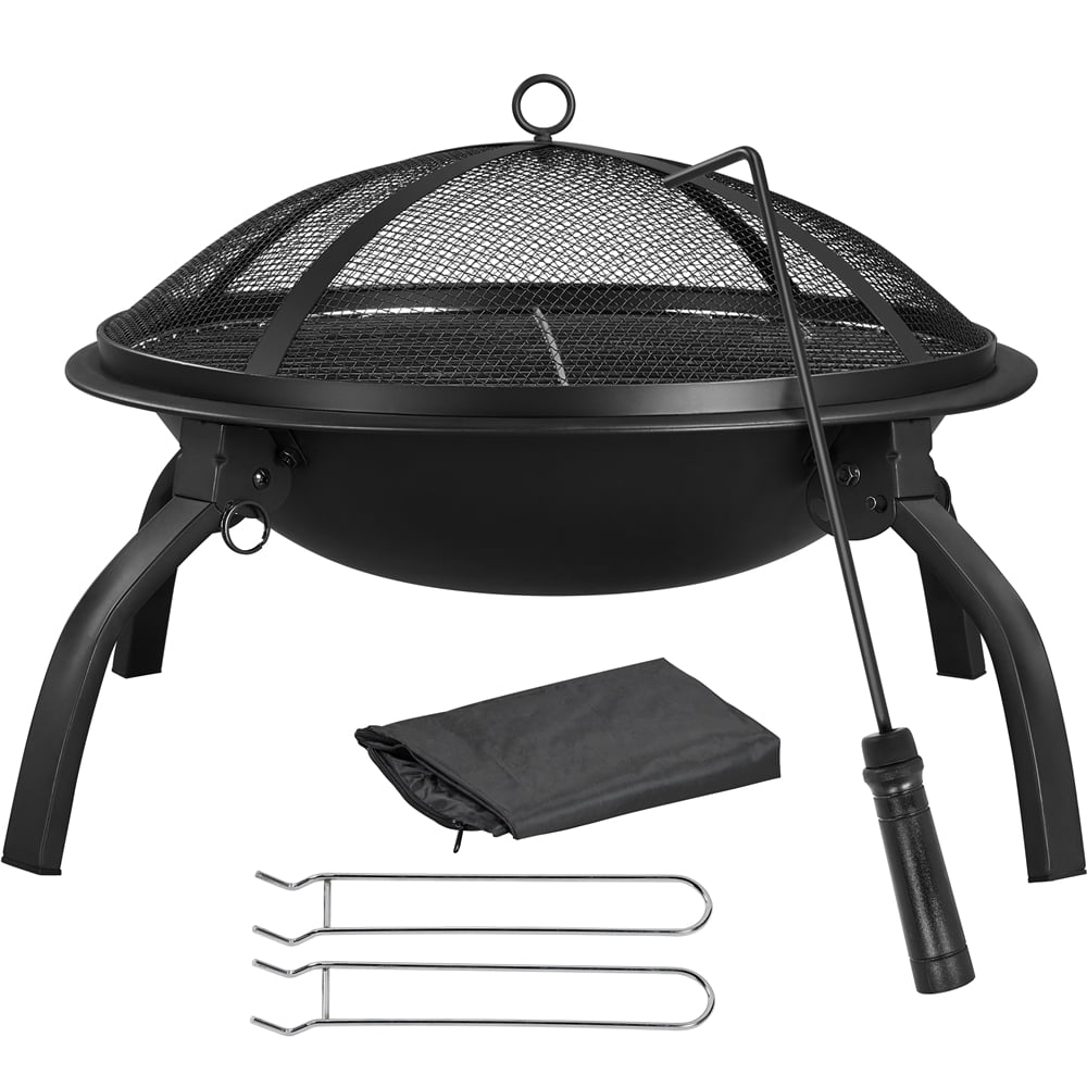 Alden Design 21″ Foldable Fire Pit with Mesh Lid and Carry Bag for Outdoors, Black Material: Iron with high-heat paint Color: Black Overall size: 54 x 38.5cm (Dia. x H) Max. weight capacity: fire bowl, 10kg; grill, 2.5kg G.W.: 6kg; N.W.: 4kg Overall size: 21.5 x 15.5 inch (Dia. x H); Max. weight capacity: fire bowl is 22 lbs; grill is 5.5lbs; G.W.: 13.2lb; N.W.: 8.8slbs Packing List: 1 x Wire Mesh Lid, 1 x Fire Bowl, 1 x Wood Grate, 1 x Cooking Grill, 1 x Fire Poker, 1 x Carry Bag, 4 x Support, 1 x Accessories Kit Note: Please allow 1cm/0.4 inch error due to manual measurement. It is recommended using the included fire poker to remove the mesh lid. Safety Tips: Please use this fire pit on non-combustible surfaces such as cement ground, rocks, or sand for your safety. Please don’t use it on lawns, wooden decks, or in any enclosed room