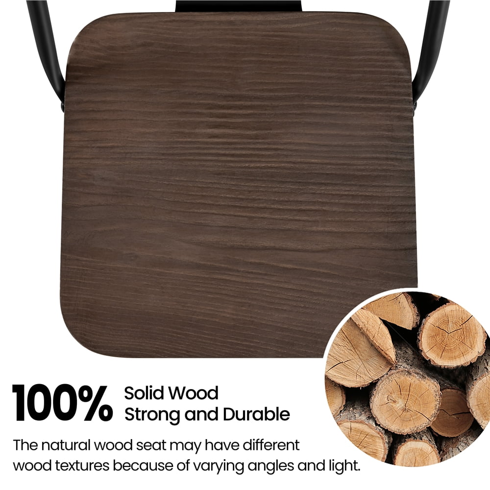 Alden Design 24″ Metal Counter Bar Stools Low Back with Wood Top, Set of 4, Black