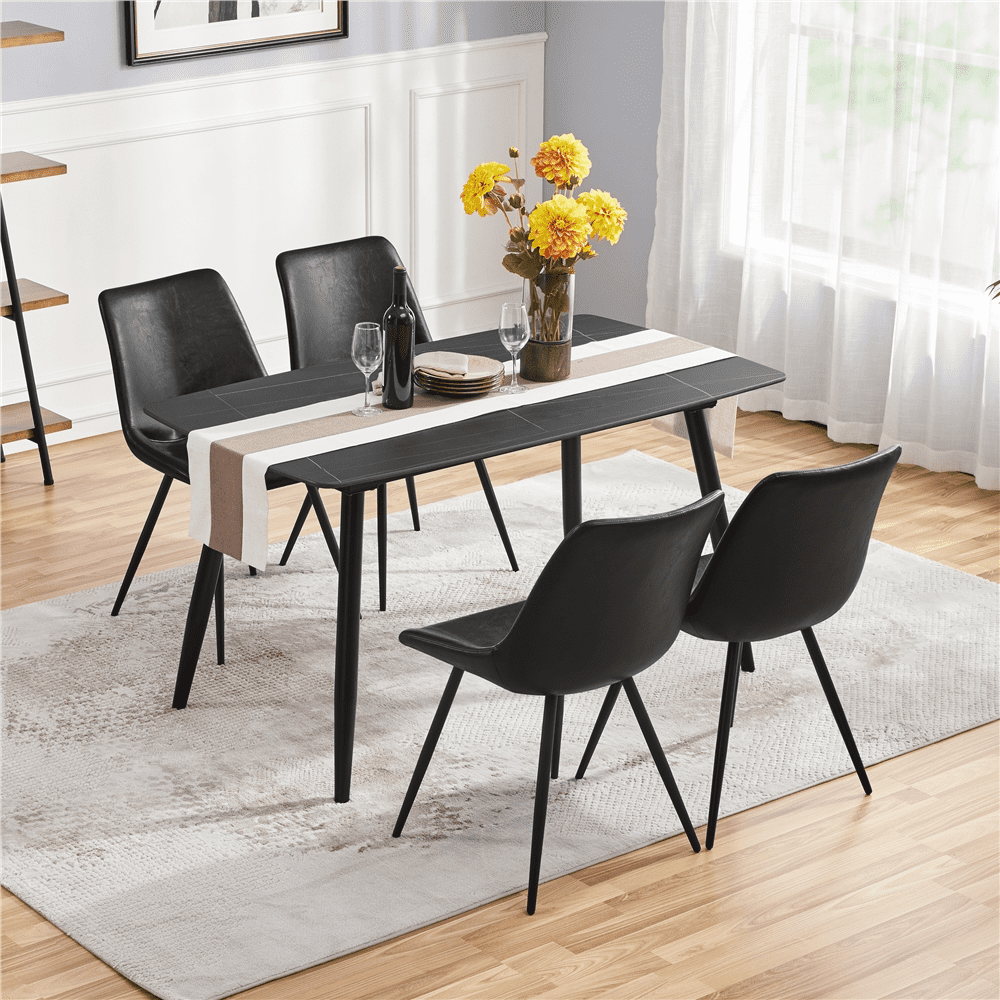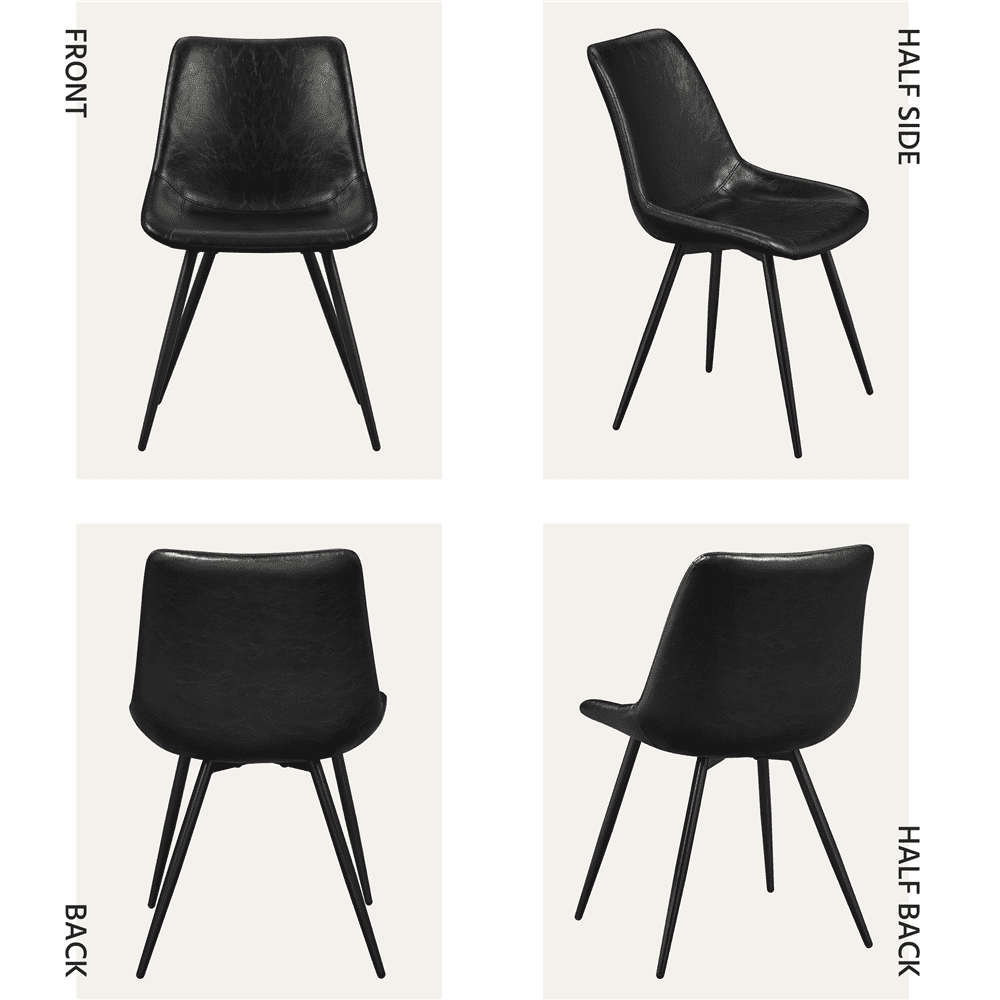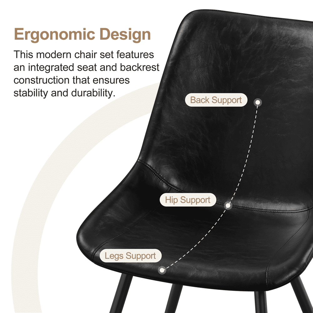 Alden Design 2PCS Faux Leather Dining Chairs with Metal Legs for Dining Room, Black