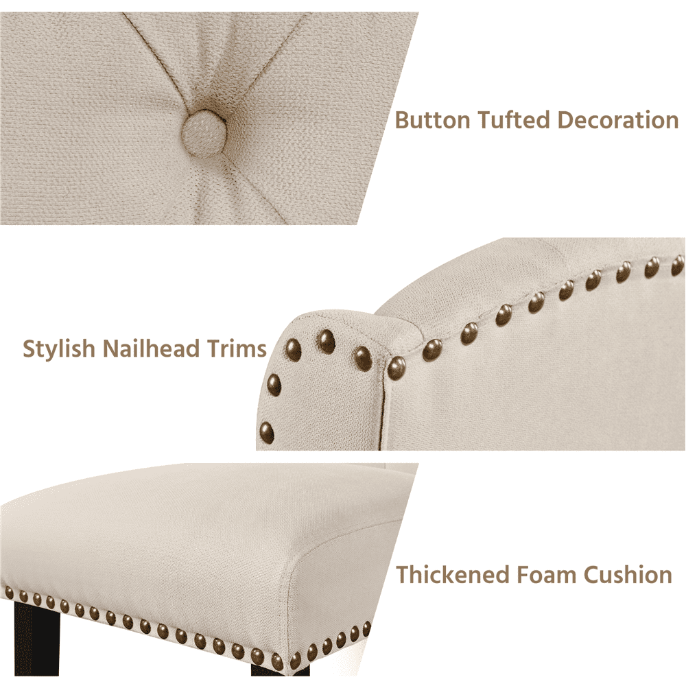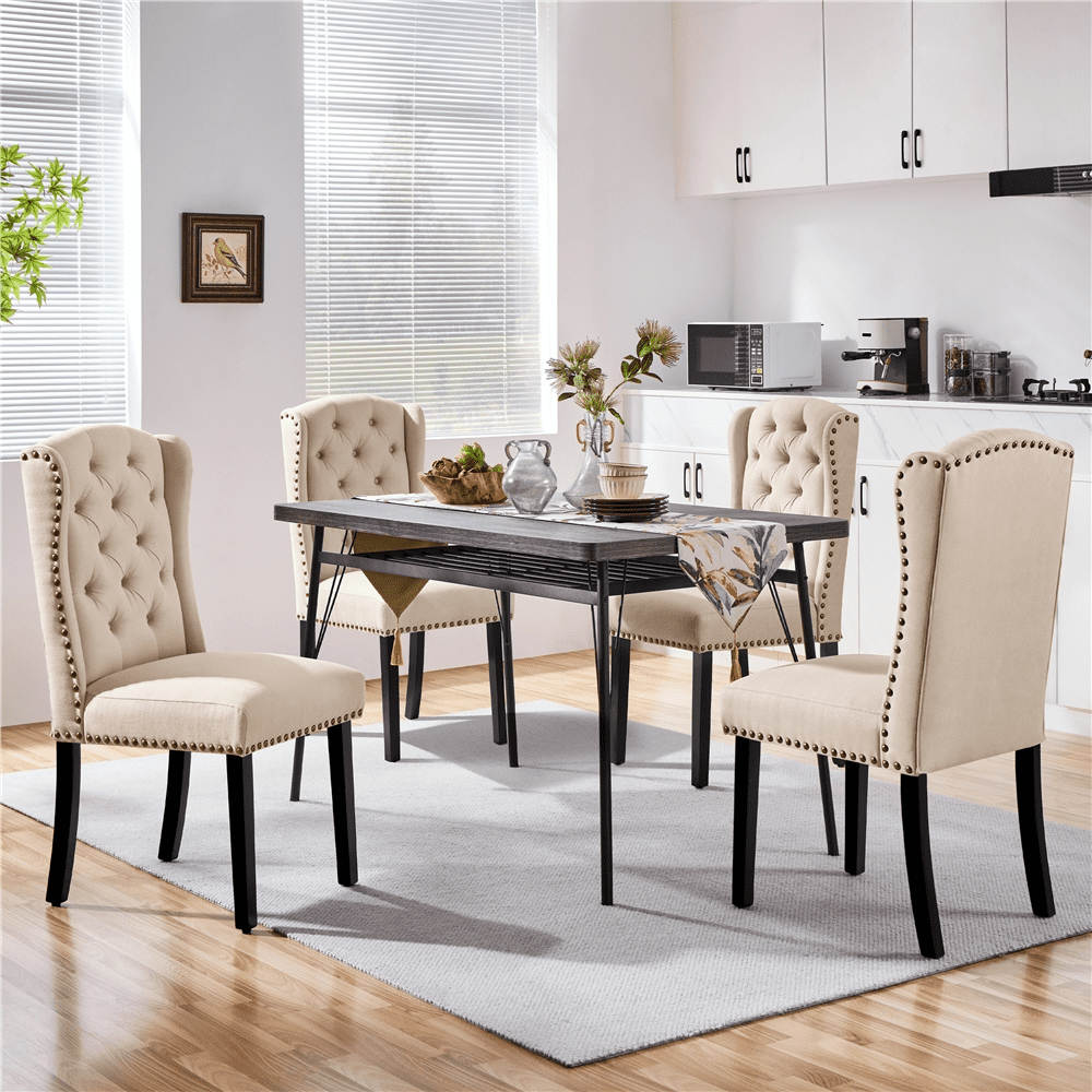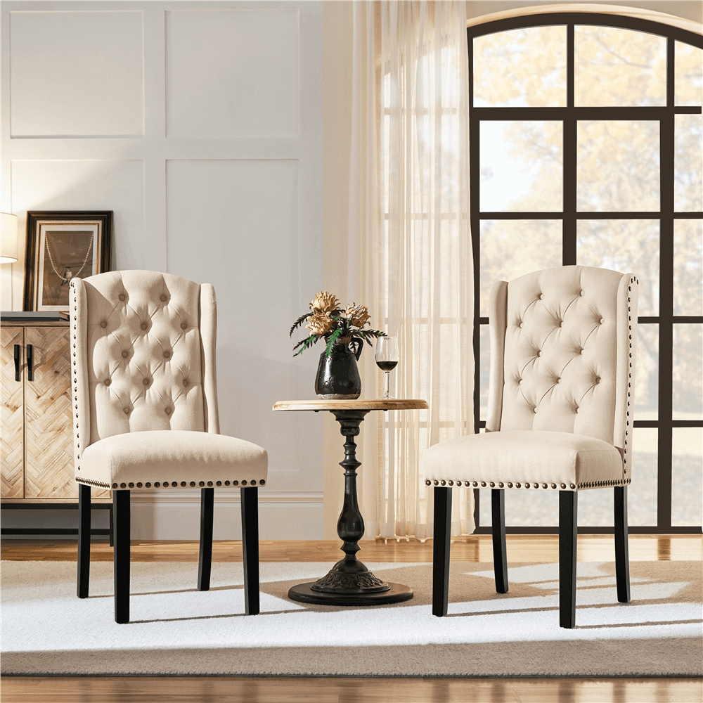 Alden Design 2pcs Upholstered Tufted Dining Chairs with Wing Design for Kitchen, Beige
