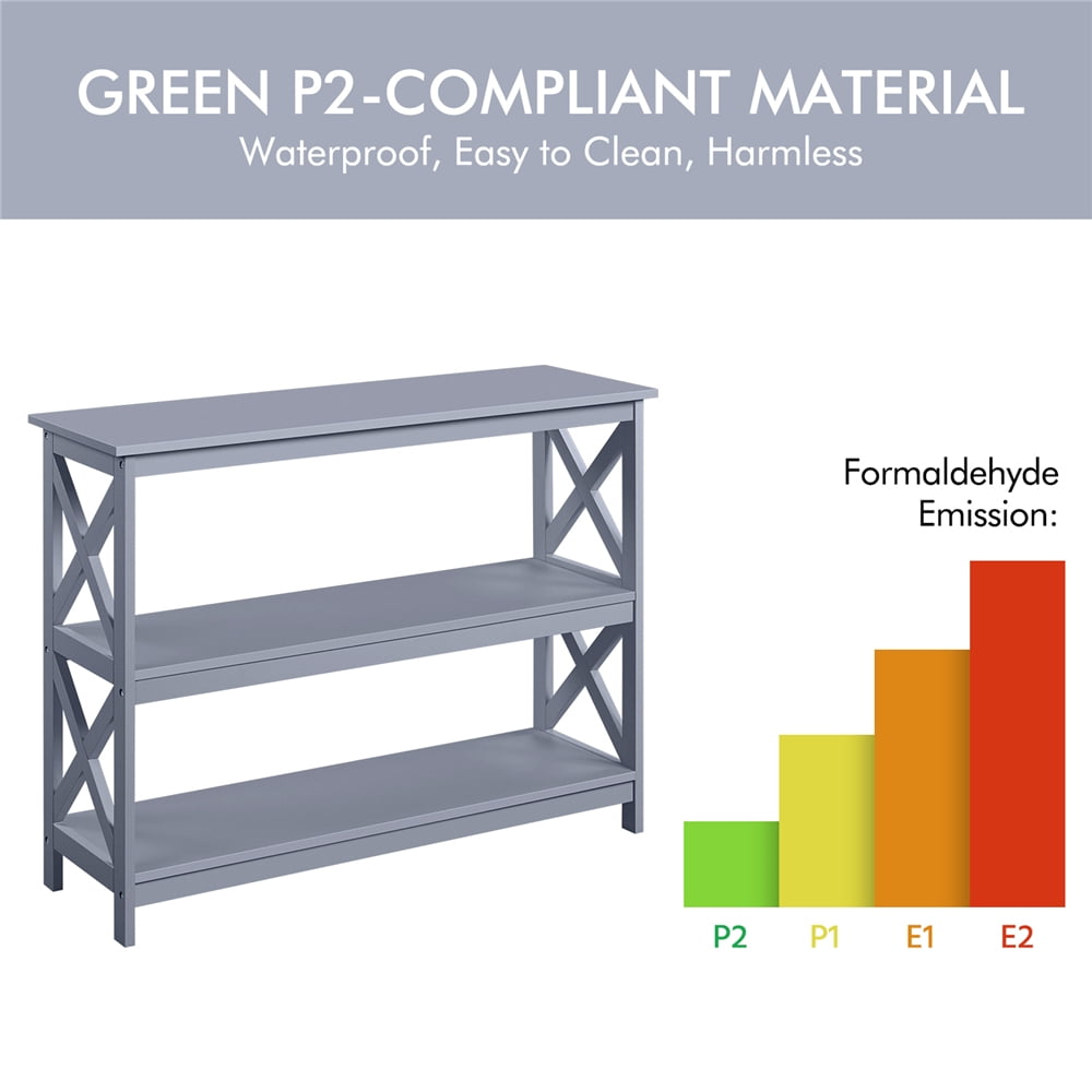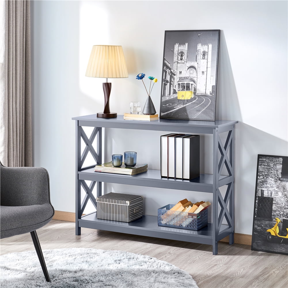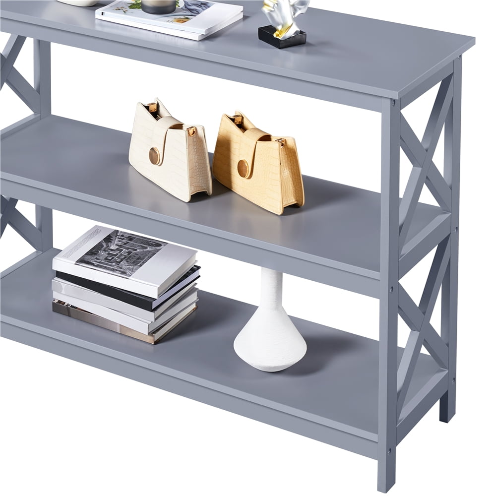 Alden Design 3-Tier X-Design Wooden Console Table with Storage Shelves for Entryway, Gray