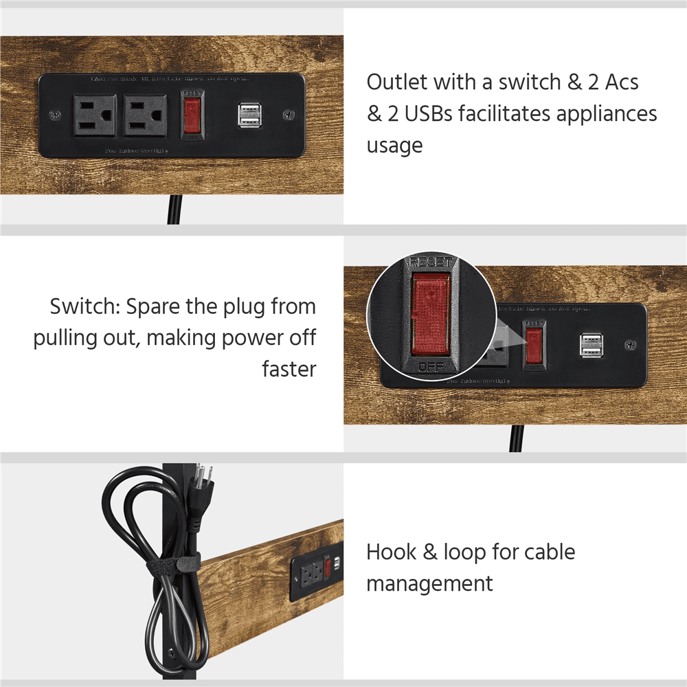 Powerful Built-in Charging Station: 1500W power supply with 6.6ft cord, 2 AC outlets + 2 USB ports, safety switch & cable management loop. Features 3-prong safety plug & double-insulated cord for worry-free charging. Smart Storage Design: Features a spacious tabletop, elevated display shelf, smooth-glide drawer, and dual-tier shelves. Rear panel keeps middle-shelf items secure, while the open-bottom design allows quick printer access. Heavy-duty Casters: This mobile laptop table has 4 rolling casters for convenient mobility, each with a large diameter of 2 inches for enhanced stability. The 2 front casters with locks can keep the table firmly in place when needed. Effortless Assembly: All tools and accessories included for quick setup in minutes with step-by-step instructions. Perfect for classrooms, homes, offices, studios, libraries, clinics & more. Solid Materials: This durable mobile laptop computer desk is built of a well-finished metal frame and quality CARB P2-compliant particle boards with high strength. It has an all-over surface with a water-resistant treatment for easy cleaning, safe for people of all ages. Age group: Adult