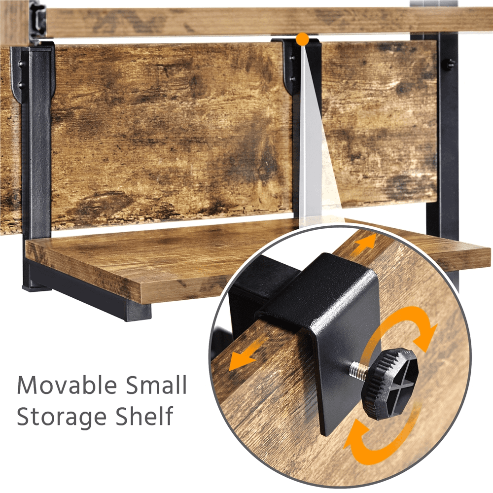 Alden Design 3 Tiers Computer Desk with Charging Station Printer Shelf for Home Office, Rustic Brown