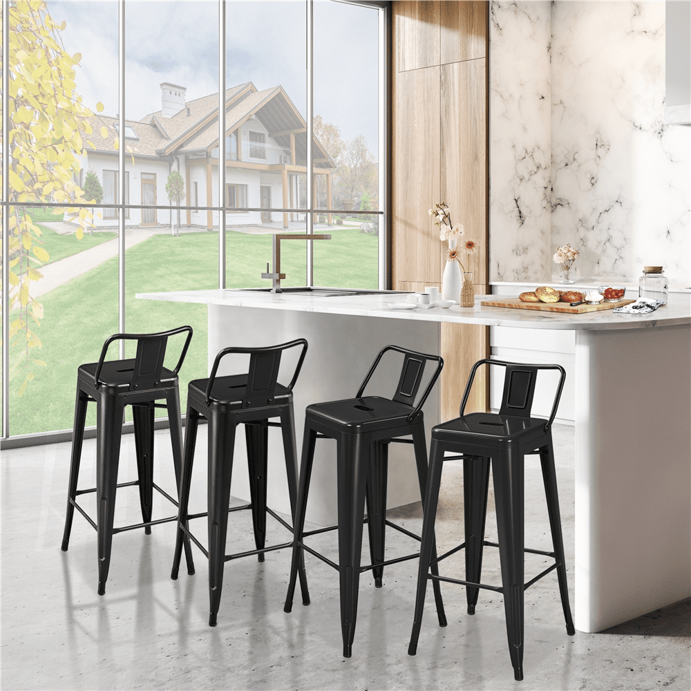 Alden Design 30″ H Metal Counter Height Bar Stools with Low Back for Home, Set of 4, Black