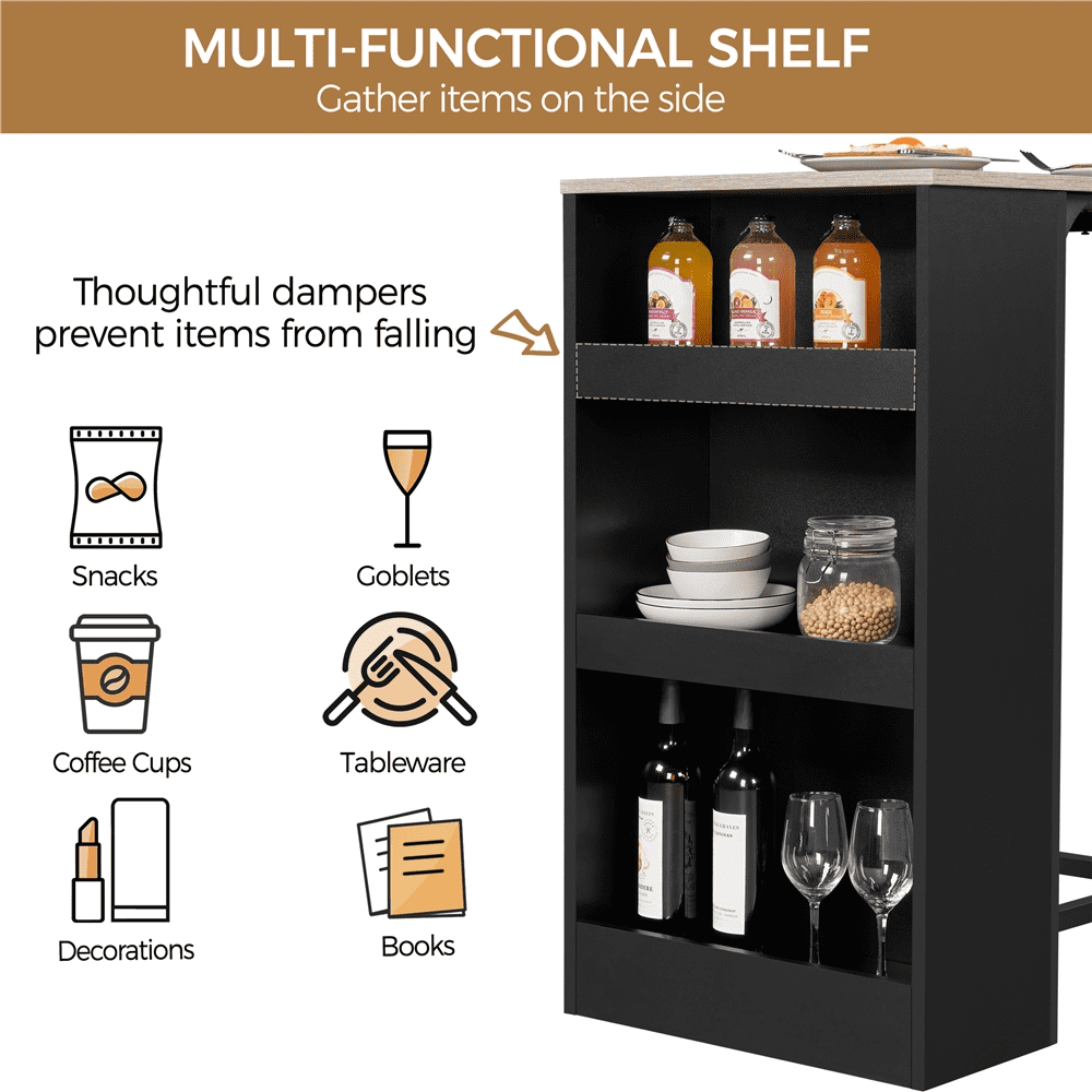 Looking for a chic and practical dining table& chair set for your lovely private space but struggling for the limited space? Look at here, we have a dining set exactly you are looking for! This vintage dining set comprises 2 dining chairs and 1 counter height table and features compact size, a hidden storage shelf and vintage style. The 2 chairs can be completely pushed under the table when not used without taking up extra space. Meanwhile, the area of each piece is broad enough for you to fully enjoy every meal with your friend or partner. The storage shelf is arranged under one short table side that can accommodate your various items so that to leave you a neat and spacious tabletop space. We choose the optimal materials to manufacture this set it can serve you for a very long time.