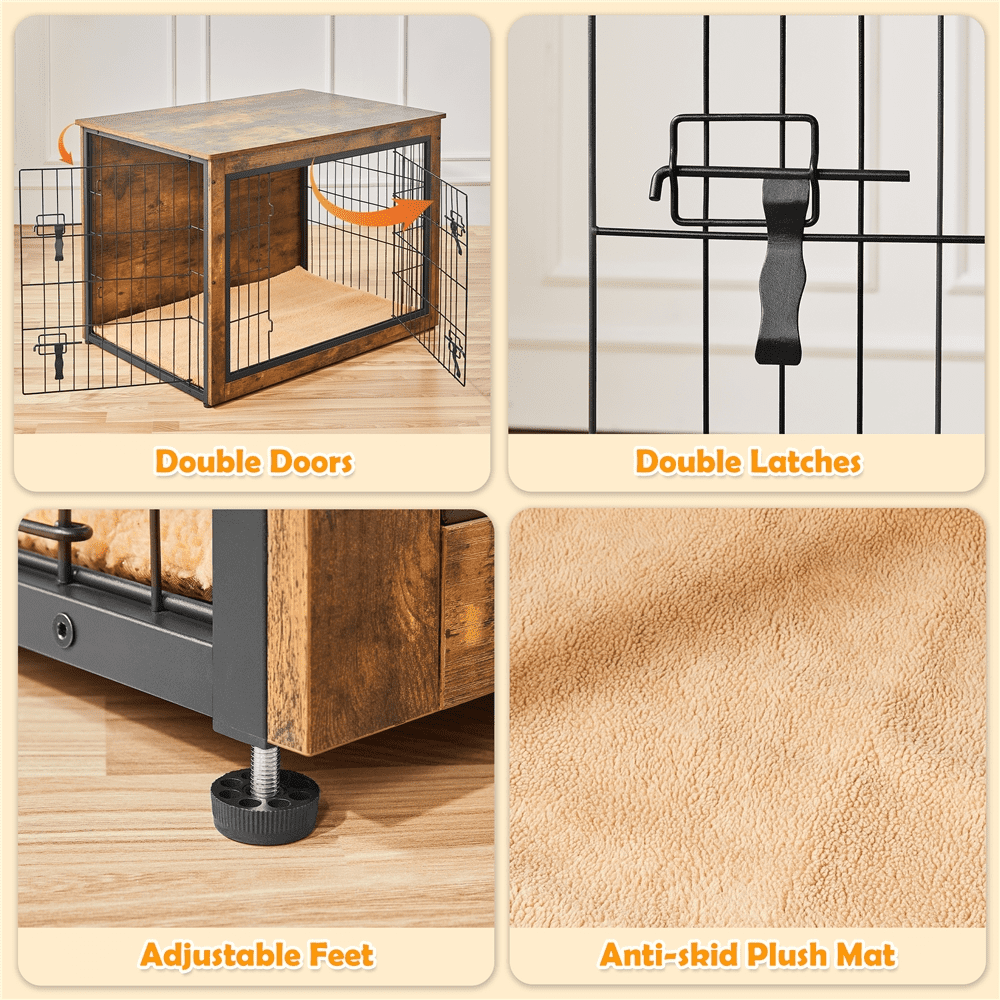 Alden Design 40″ W Rustic Industrial Wooden Dog Crate with Anti-skid Plush Mat, Rustic Brown Color: Rustic Brown Materials: Metal, MDF Bar Spacing (between the inner sides of 2 bars): 1 1/2″ Assembled Dimensions: 40″ L × 28″ W × 29″ H Crate Interior Size: 38″ W × 25.6″ D × 27.2″ H Crate Front Opening: 22″ W × 21.3″ H Crate Side Opening: 18″ W × 26″ H Mat: 37.6″ L × 26″ W Maximum Weight Capacity: Top: 220 lb Baseboard: 135 lb Item Weight: 71.8 lb Shipping Weight: 82.7 lb Note: 1. Please allow a 1/2″ measurement tolerance. 2. Please measure your dog before ordering to ensure the crate is comfortable enough. Substantial Materials & Solid Construction Sturdy Metal-wood Construction Assembly Required Resdential Use