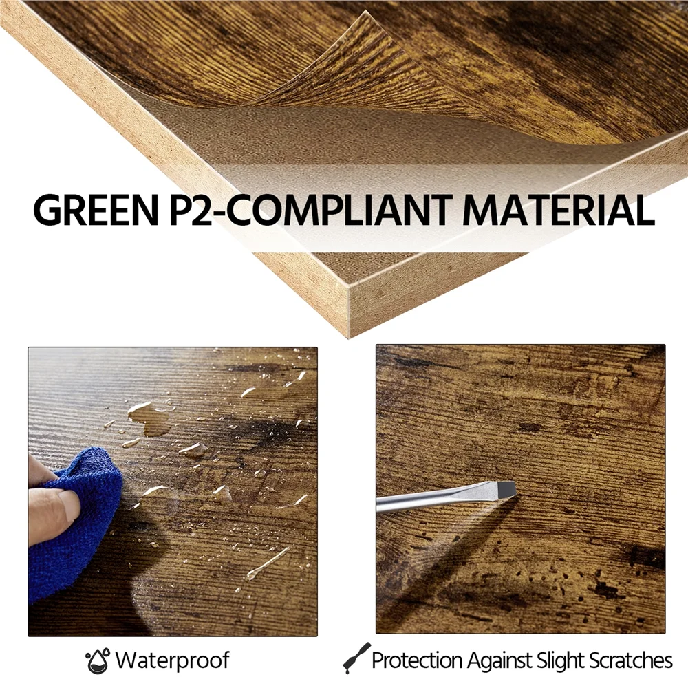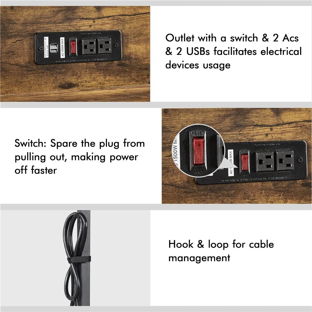 This vintage laptop/computer desk, crafted by veneered CARB P2 MDF boards and strong iron, is a durable, safe, stable partner for your work. Two integrated shelves, one above the desktop and the other below, expand the storage space without taking up any extra working space, improving the desktop’s service efficiency. The 2m long, 1500W power outlet with 2 ACs & 2 USB ports, a switch, and a hook & loop spares you from the trifles of socket shortage, cables not long enough, and nowhere to charge devices. Meanwhile, unlike the traditional design of some office supplies, this writing desk features a rustic vintage design, which can seamlessly fit into any room, leaving you with more opportunities to find the perfect space to work at home, from the office, lounge, or kitchen. This desk is versatile and stylish while thoughtfully designed to include charging and storage in one.