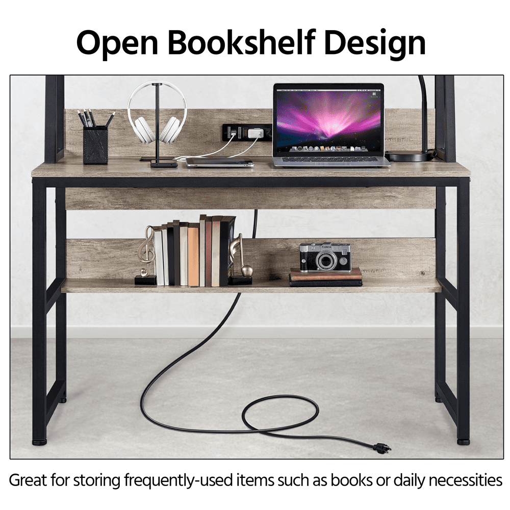 Alden Design 47.5in Laptop Computer Desk with Bookshelf and Power Outlet for Home Office, Gray