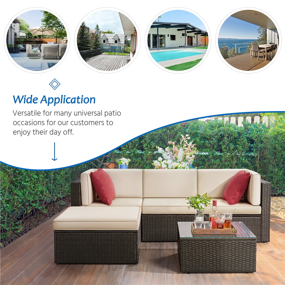 Alden Design 5 Pieces Patio Waving Rattan Wicker Furniture Sets with Cushions