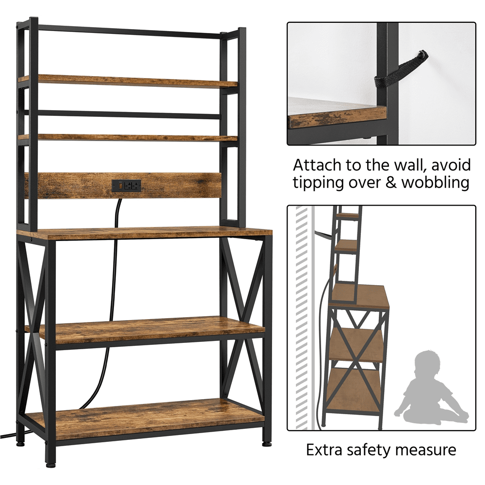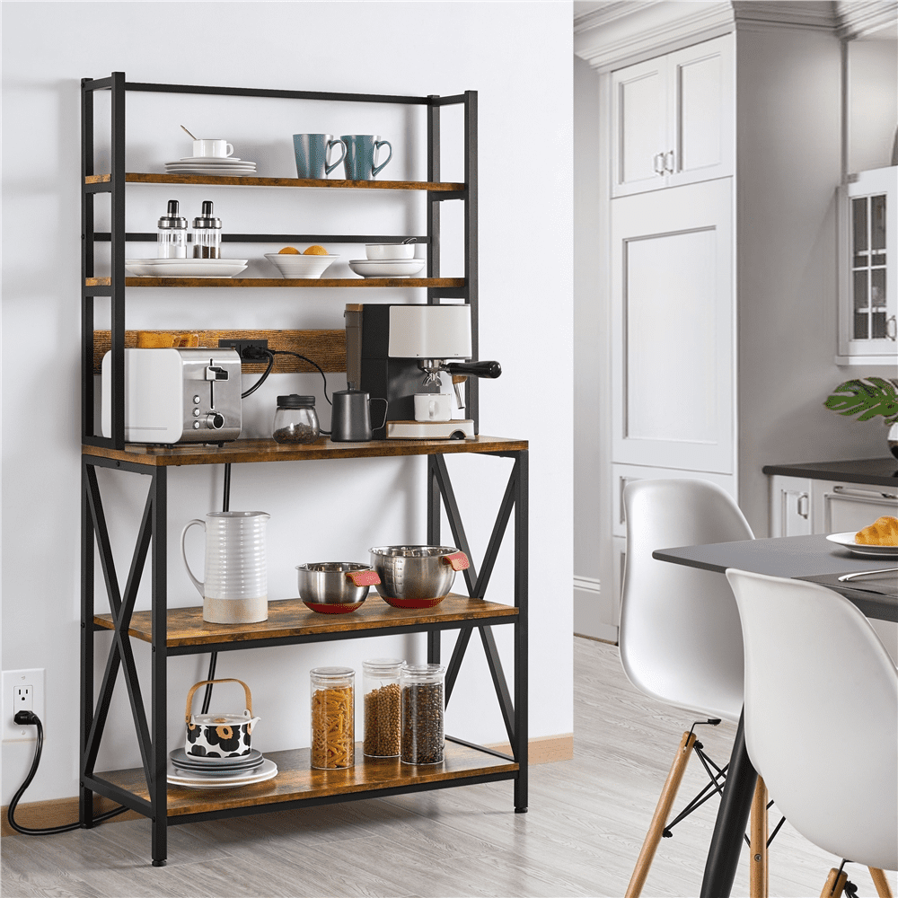 Alden Design 5-Tier Kitchen Baker’s Racks with Power Outlets for Kitchens, Rustic Brown