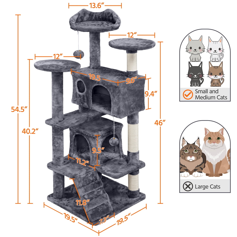 Alden Design 54.5″H Cat Tree Tower for Kittens & Small/Medium Cats, Dark Gray