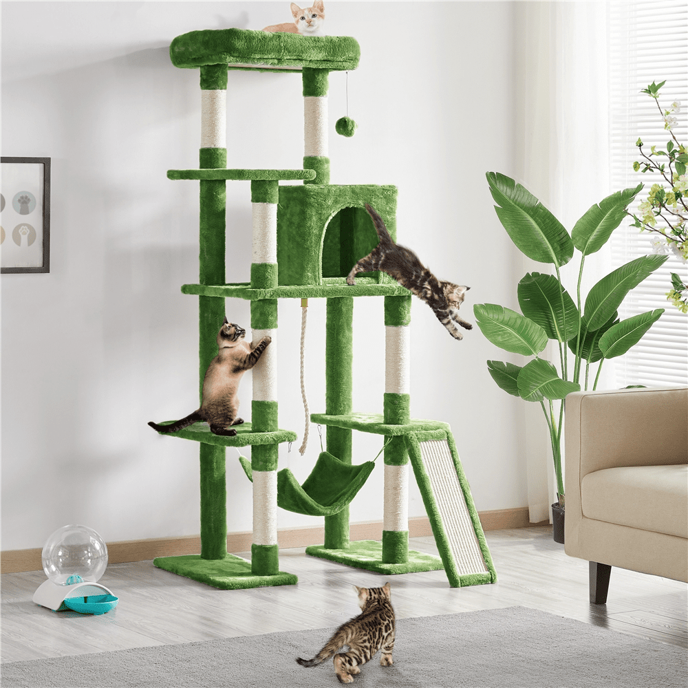 Alden Design 63″H Cat Tree Scratching Posts Cat Tower for Kittens Indoor, Green