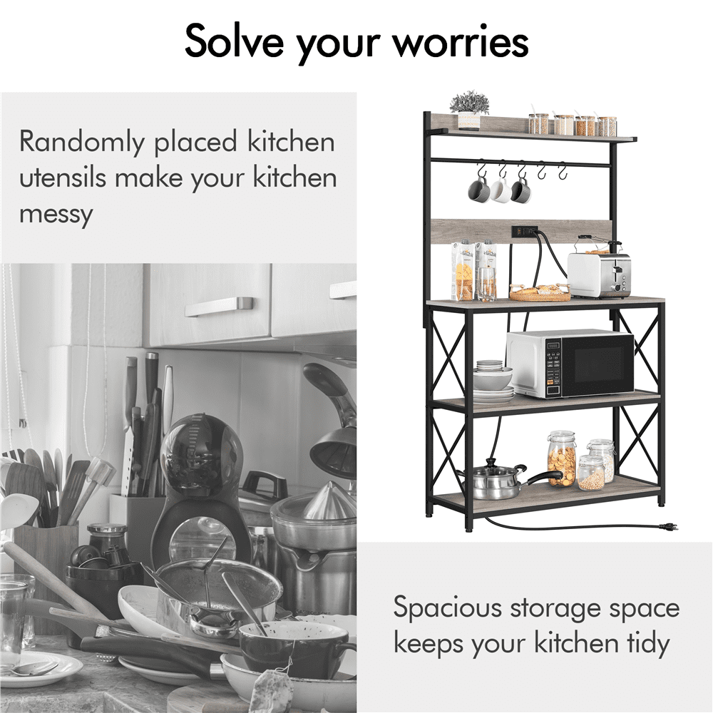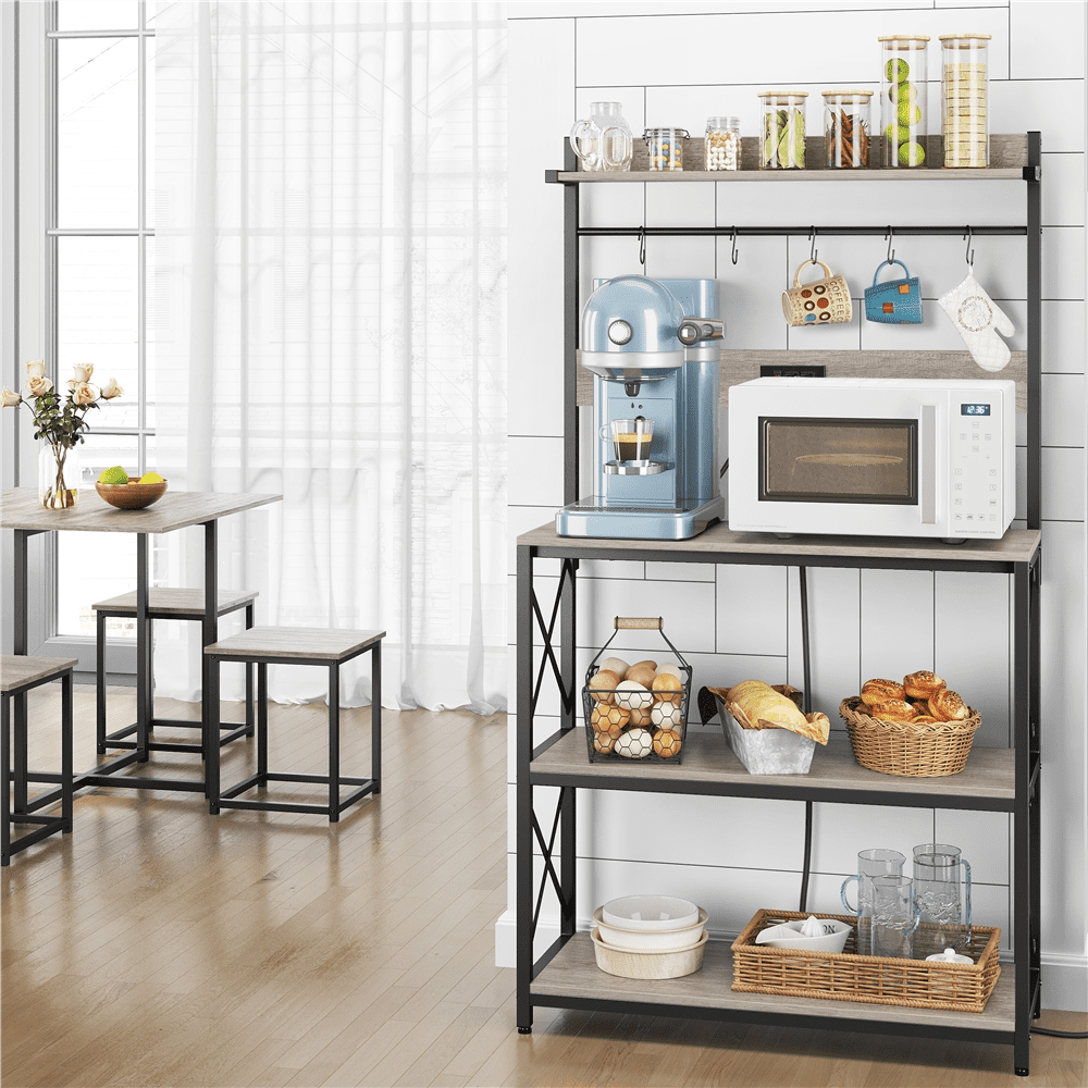 Alden Design 63″H Kitchen Baker’s Racks with 2 AC Outlets for Kitchens Living Rooms, 4-Tier, Gray