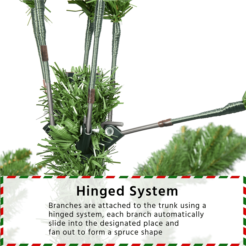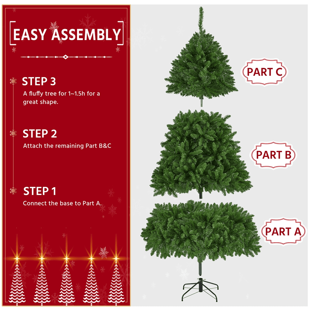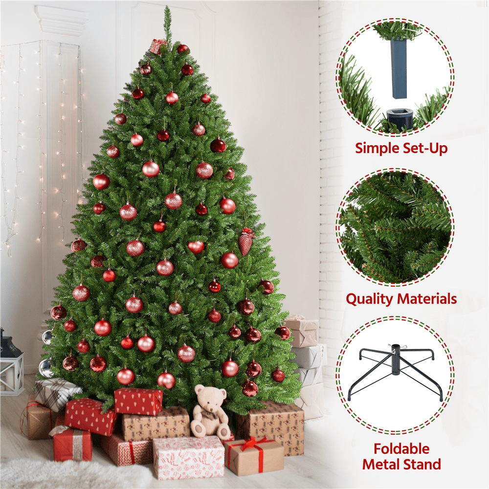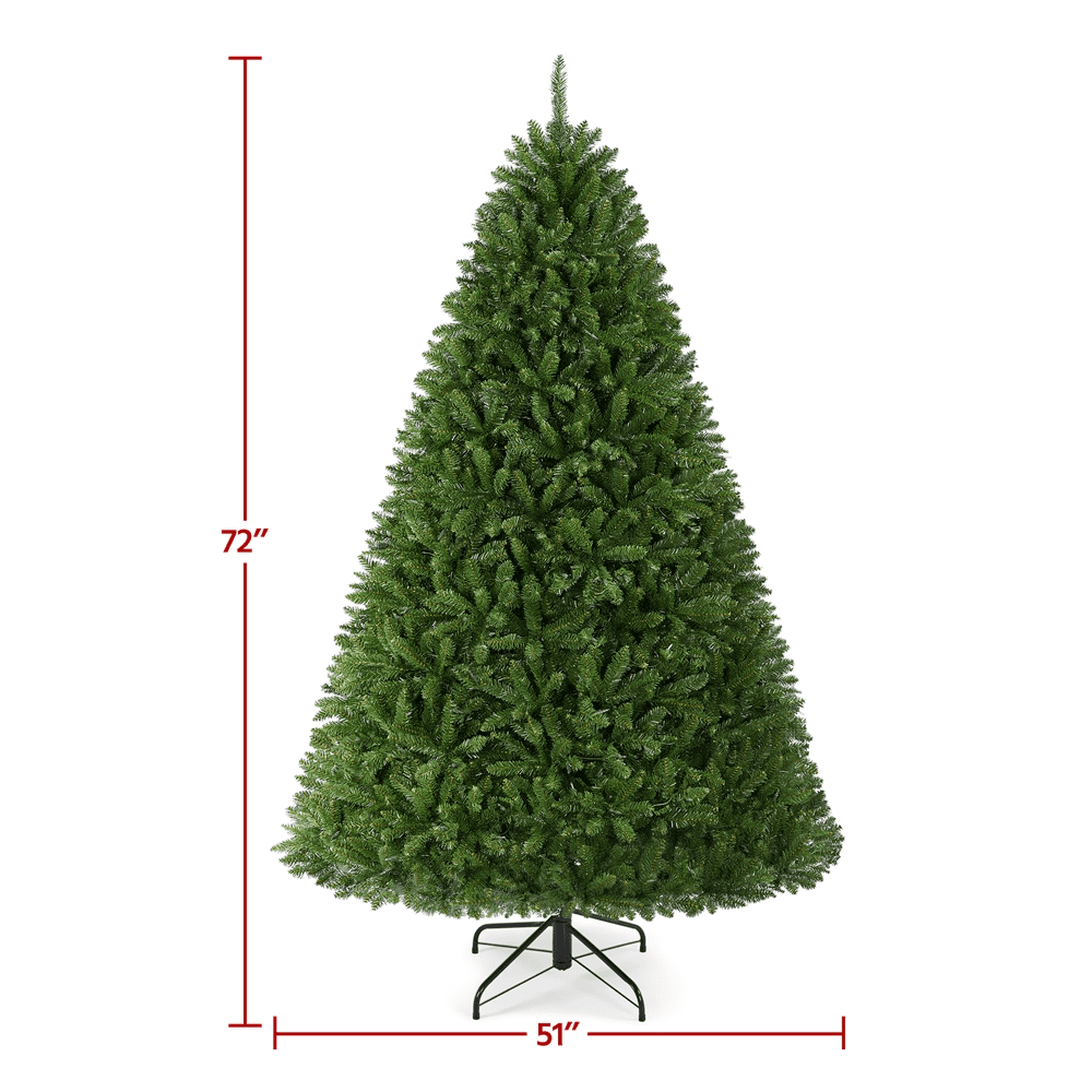 SmileMart 6ft Ultra-Thick Artificial Christmas Tree with Foldable Stand for Holiday Decoration, Green Color: Green Materials: PVC, Iron Type: Ultra-thick Unlit Spruce Total Tips Count: 1614 Assembled Dimensions: 51 × 72″ (Dia.× H) Shipping Dimensions: 44″ L × 12.6″ W × 12″ H Stand Dimension: 20 × 6.7″ (Dia.× H) Tree Trunk Diameter: 1.3″ Trunk Pole Thickness: 0.02″ Shipping Weight: 29 lb Item Weight: 24 lb Note: 1. Please allow ± 1.2’’ measurement error due to the bendable branch tips. 2. Please allow ± 1.1lb measurement error. 3. It is suggested to wear gloves while setting up and fluffing out. Just like real spruce, the “needles” can be a bit scratchy. Ultra-full Christmas Tree Foldable Stand