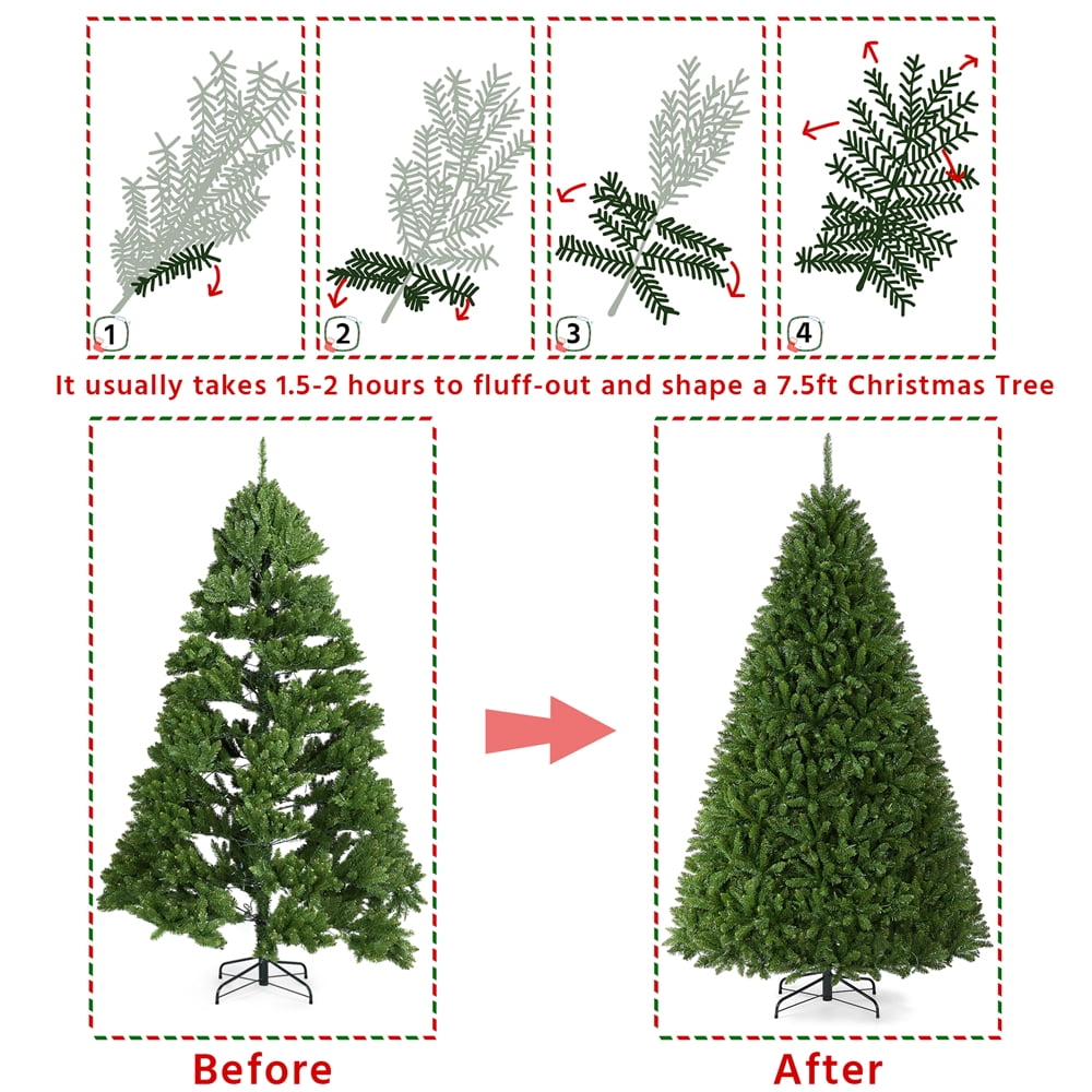 ULTRA-THIC CHRISTMAS TREE: This artificial Christmas tree are hinged with numerous branches and tips, which give a ultra-full and fluffy look from any angles in your decorated places. Green and thick finish of branch tips enhanced the natural leafy vibe of this decorative holiday tree. Warm toned light add extra festive atmosphere. Lush tips also leave more space for your other Christmas ornaments./li> PREMIUM QUALITY MATERIAL: Get into the holiday joy with this lush man-made tree. All branches and tips are made of premium PVC, which makes it green and durable. Both trunk and and the stand are made of iron, ensuring sturdy and balanced placing. Other feathers such as fire-resistant and anti-collapse are all in one./li> FOLDABLE STAND: This stand is foldable for easy storage and packing, you can effortlessly fold it to save more space in garage and wait for another coming year. Four feet of the stand are covered by non-skid rubber each to make sure the tree is sturdy, also preventing from floor scratches./li> VERSATILE DESIGN: Our green spruce artificial tree can be used either indoor or outdoor, daytime or nighttime, the sturdy metal frame is relatively heavier and not likely to collapse. It is an pre-lit tree with no decoration on it except for branch tips and lights. We hope you can enjoy a sweet fun time decorating this full and fluffy tree with your kids, family and beloved ones./li> FLEXIBLE TIPS: The “leaves” on our tree can be bent and set at will. After putting the tree body and the stand together, you are supposed to fluff out the tips to give a full look of your unique Christmas tree. All tips are bendable and can be set in a certain direction, normally the fluffing out procedure including two steps: lifting up the top tips and pulling out the side tips. This artificial Christmas tree is hinged with numerous branches and tips, which gives an ultra-full and fluffy look from any angle in your decorated places The trunk and stand of this artificial Christmas tree are metal with a strong load capacity