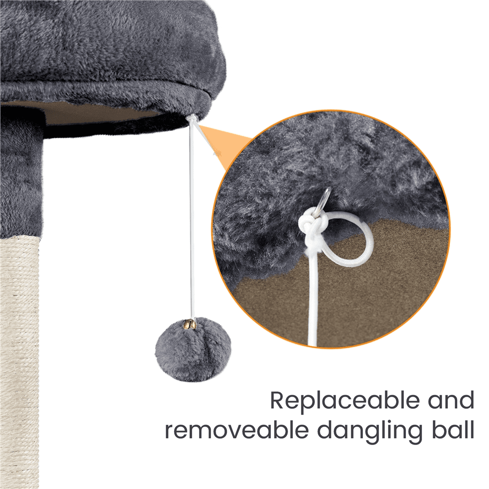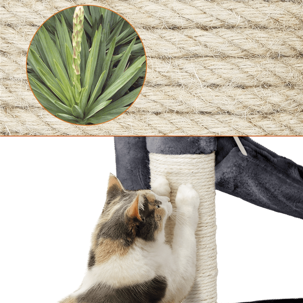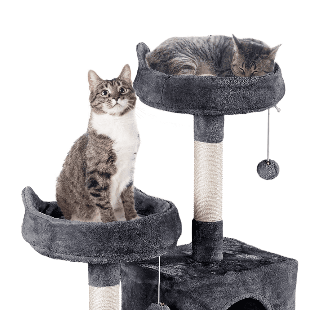 Alden Design 70.5″H Multi Level Cat Tower Tree with 2 Condos & 2 Foam-Padded Perches for Medium/Large Cats, Light Gray Must-have for families with Multiple Cats Replaceable Toys Easy Assembly Joyful Multifunctional Cat Tree Color: Light Gray Materials: Particle Board, Plush, Sisal Overall Dimensions: 24 ” L x 19 ” W x 70.5 ” H Foam-edged Perch:15 ” Dia. x 5.5 ”H Cubic Condo : 14 ” L x 12 ” W x 12 ” H; Entrance Size: 7.5 ” W x 8.7 ” H Barrel-shaped Condo: 13 ” Dia. x 12 ” H; Entrance: 7.5 ” W x 8.7 ” H Hammock:16.5 ” L x 13.4 ” W Baseboard: 24 ” L x 19 ” W Platform Hole Diameter:6.5 ” Dia. Maximum Weight Capacity: total: 88 lb; condo/perch: 22 lb; hammock: 17.6 lb Net Weight (assembled product weight): 34.8 lb Gross Weight (product in the box): 37 lb Note: 1. Keep the cat tree dry and away from fire. 2. Please ensure the product’s size and maximum load capacity fit your pet before purchasing. 3. Please allow a 1/2″ measurement tolerance.