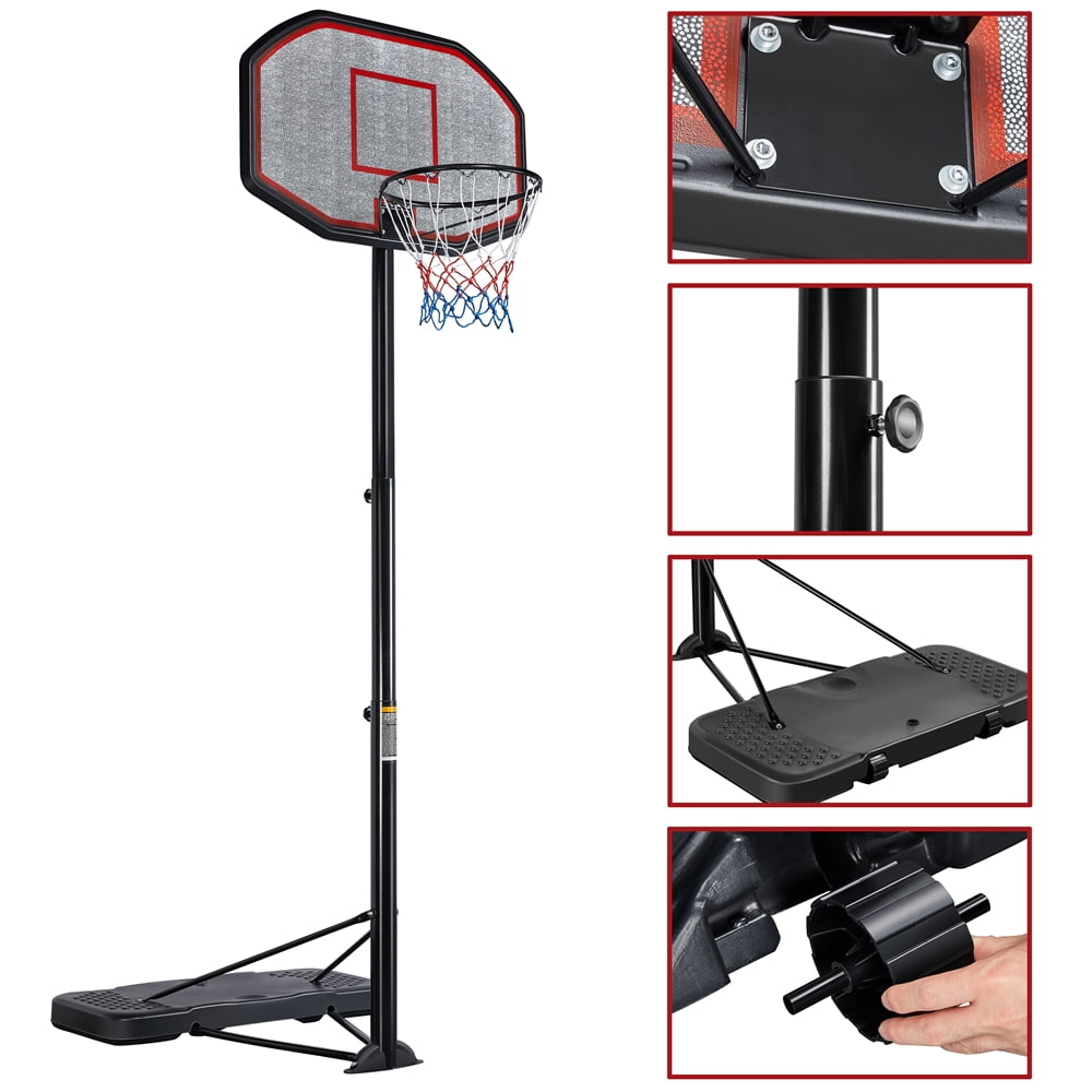 Outstanding quality: This water and weather-resistant basketball hoop is constructed of a high-density polyethylene backboard and base, powder-coated steel pole and rim. Its excellent strength and durability can withstand the elements Fun for all ages: Thanks to the telescopic pole design, the rim height can be set from 7 ft/218.5 cm to 10 ft/306.5 cm in 6’’/15 cm increments, making this portable basketball hoop system suitable for both younger players and adults Move it freely: Equipped with two 4’’/9.5 cm wheels, this portable basketball hoop system can be rolled to anywhere you want without much effort, offering versatile placement in your backyard or driveway Compact storage size: Despite the large assembled size, this portable basketball system can be taken apart into a compact size to be conveniently stored in your garage or transported in your car trunk Specifications: Color: just as pictures show; Material: high-density polyethylene, steel; Overall dimension: 44” x 49.5” x (108.5”-143”)/3.7’ x 4’ x (9’-12’) (LxWxH); Rim height adjustment: incremental 7’-10’; Backboard size: 43” x 28’’ (LxW); Rim diameter: 19’’; Maximum base size (filled with water): 10.5-gallon Brand: Alden Design