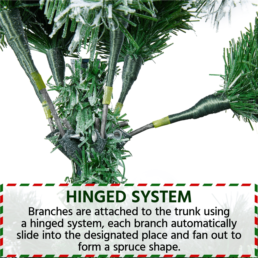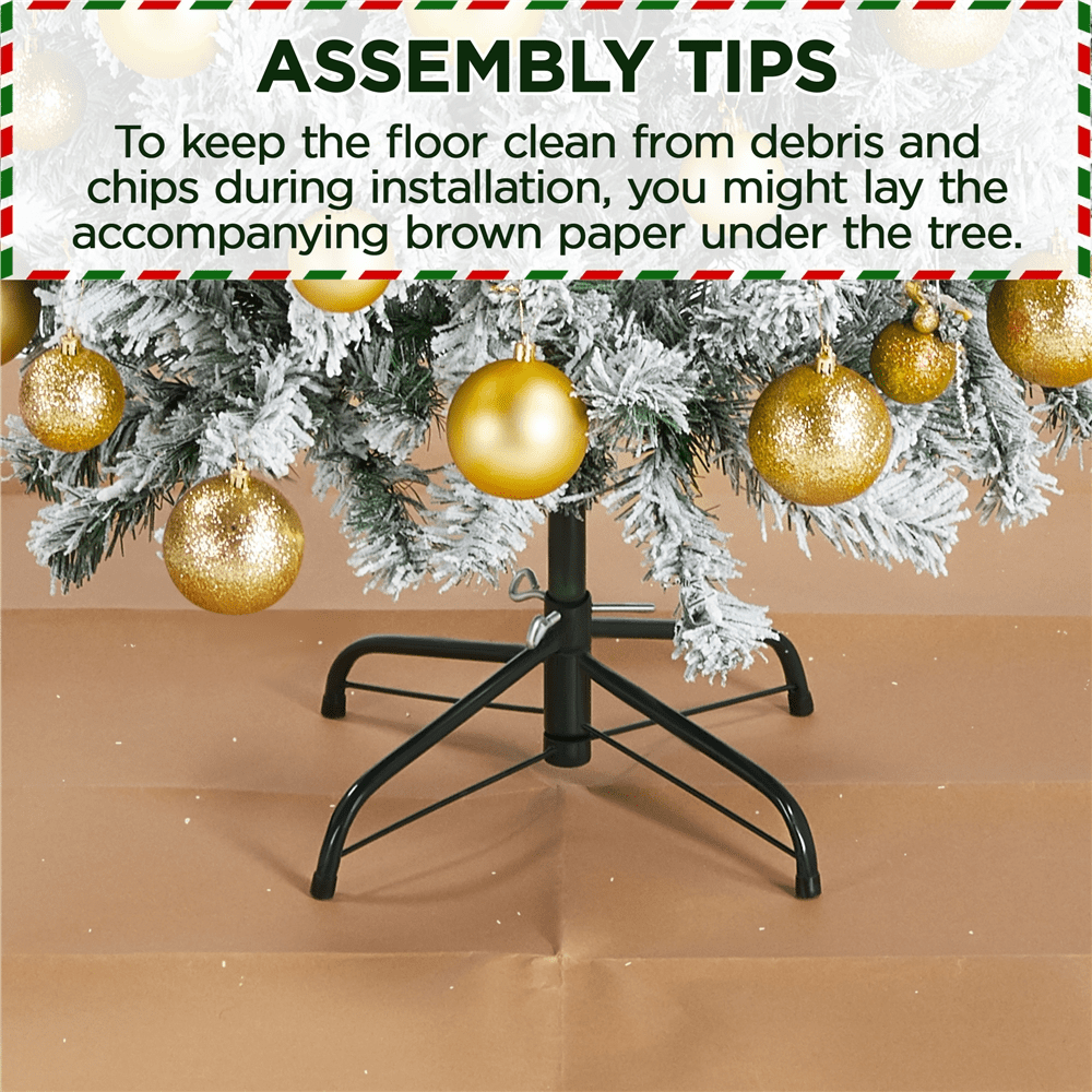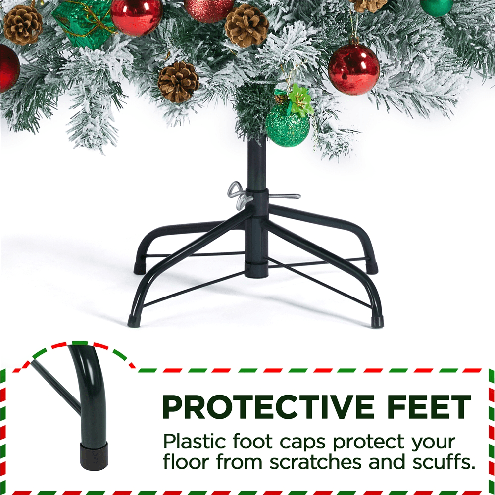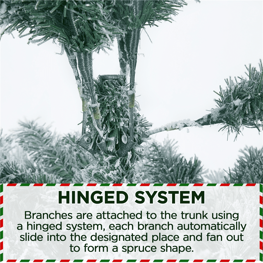 Alden Design 9ft Frosted Artificial Christmas Tree with Foldable Stand,Green: Color: Green Materials: PVC, Iron Type: Unlit Flocked Spruce Total Tips Count: 2108 Assembled Dimensions: 66 × 108” (Dia.× H) Stand Dimension: 28 × 7” (Dia.× H) Tree Trunk Diameter: 1.3” Trunk Pole Thickness: 0.03” Shipping Weight: box #1: 43.4 lb; box #2:19 lb Item Weight: total: 48.5 lb Flexible Tips Foldable Stand Assembly Required Resdential Use