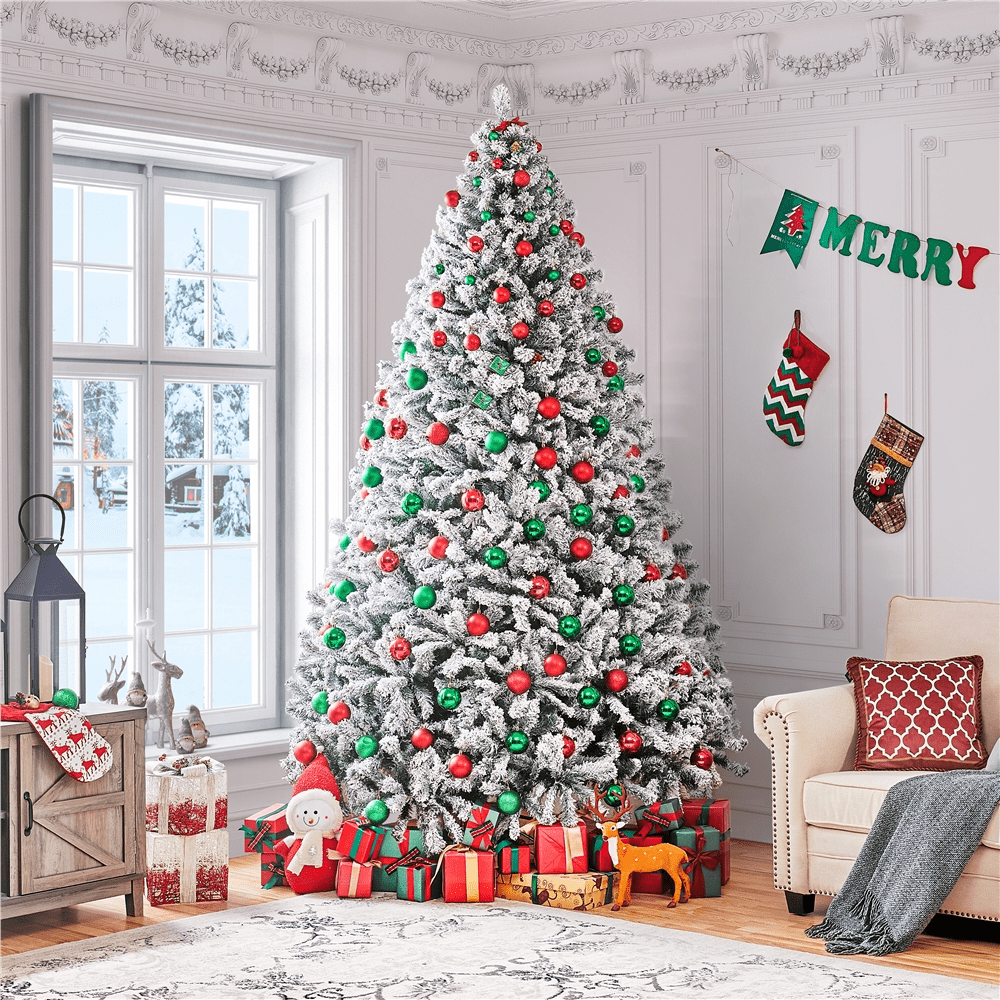 Alden Design 9ft Frosted Artificial Christmas Tree with Foldable Stand,Green