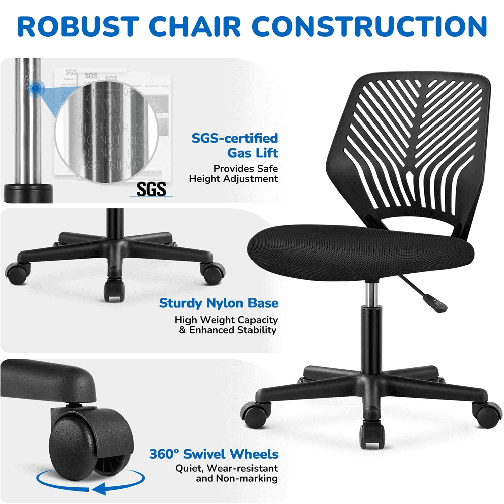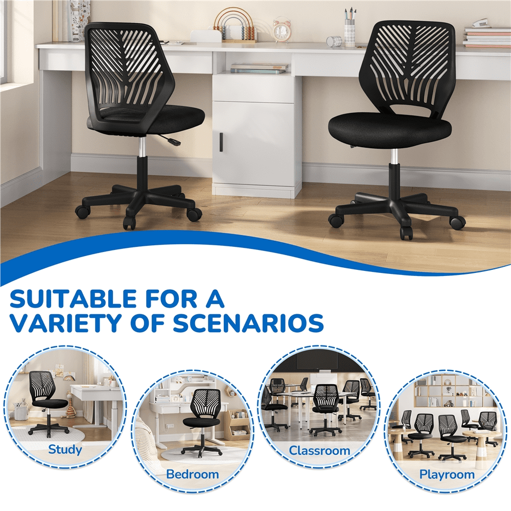 Alden Design Adjustable Armless Mid Back Office Chair, Set of 2, Black
