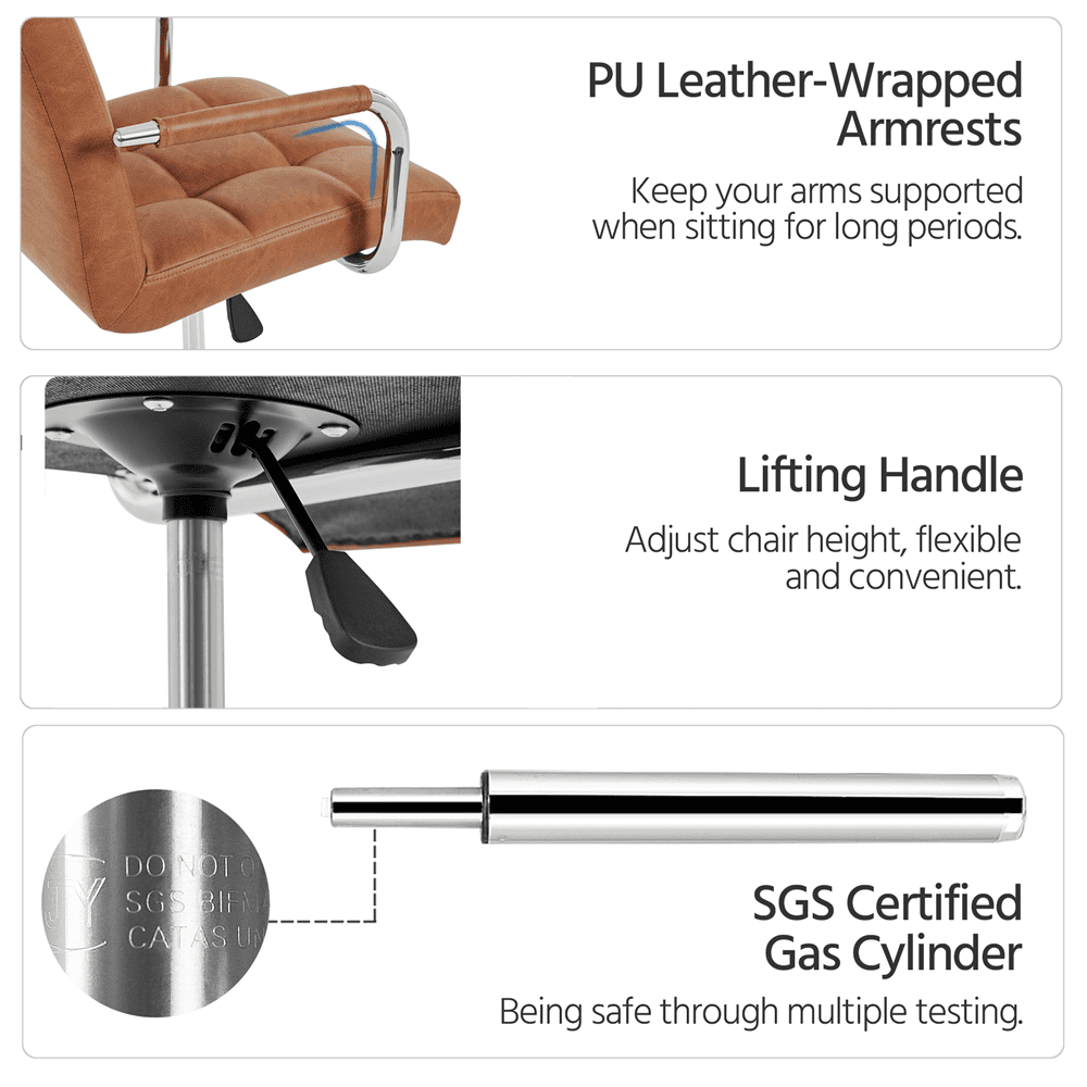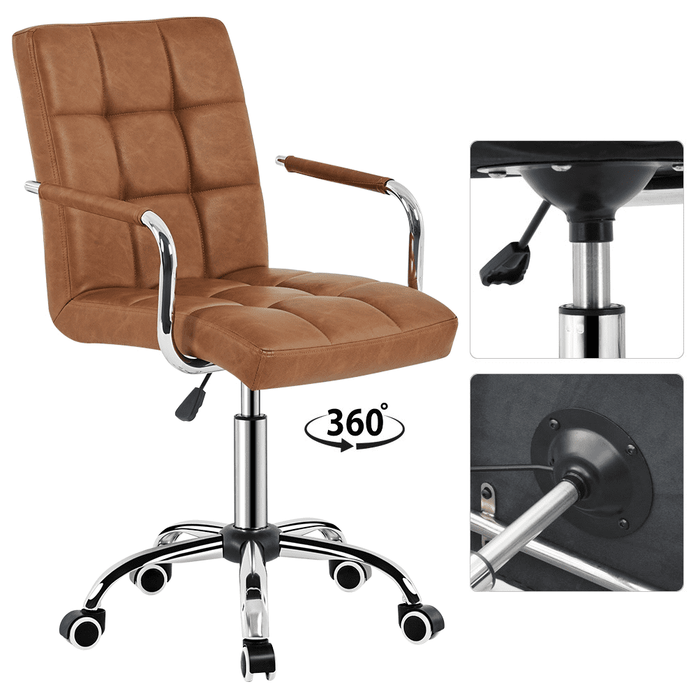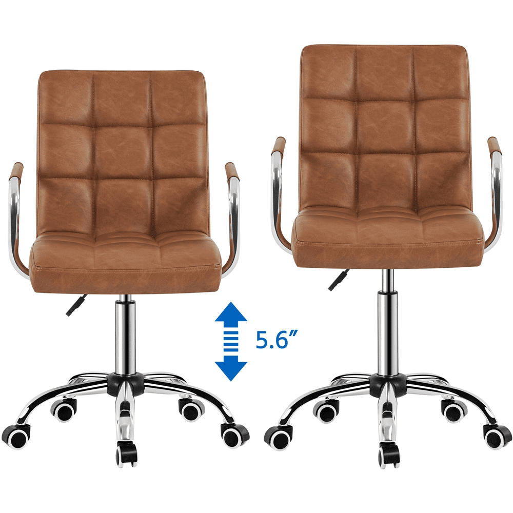 Smile Mart Adjustable Faux Leather Mid Back Office Chair with Armrests, Retro Brown Materials: PU leather, plywood, foam, metal Color: Retro Brown Overall size: 24 x 21.7 x (35-40.6)inch (L x W x H); Max. weight capacity: 264.6lb; G.W.: 23.4lb; N.W.: 18.7lb Note: Please allow ±1cm/0.4inch error due to manual measurement. For safety, please do not stand on the chair. Adjustable Height Swivel Desk Chair with Arms