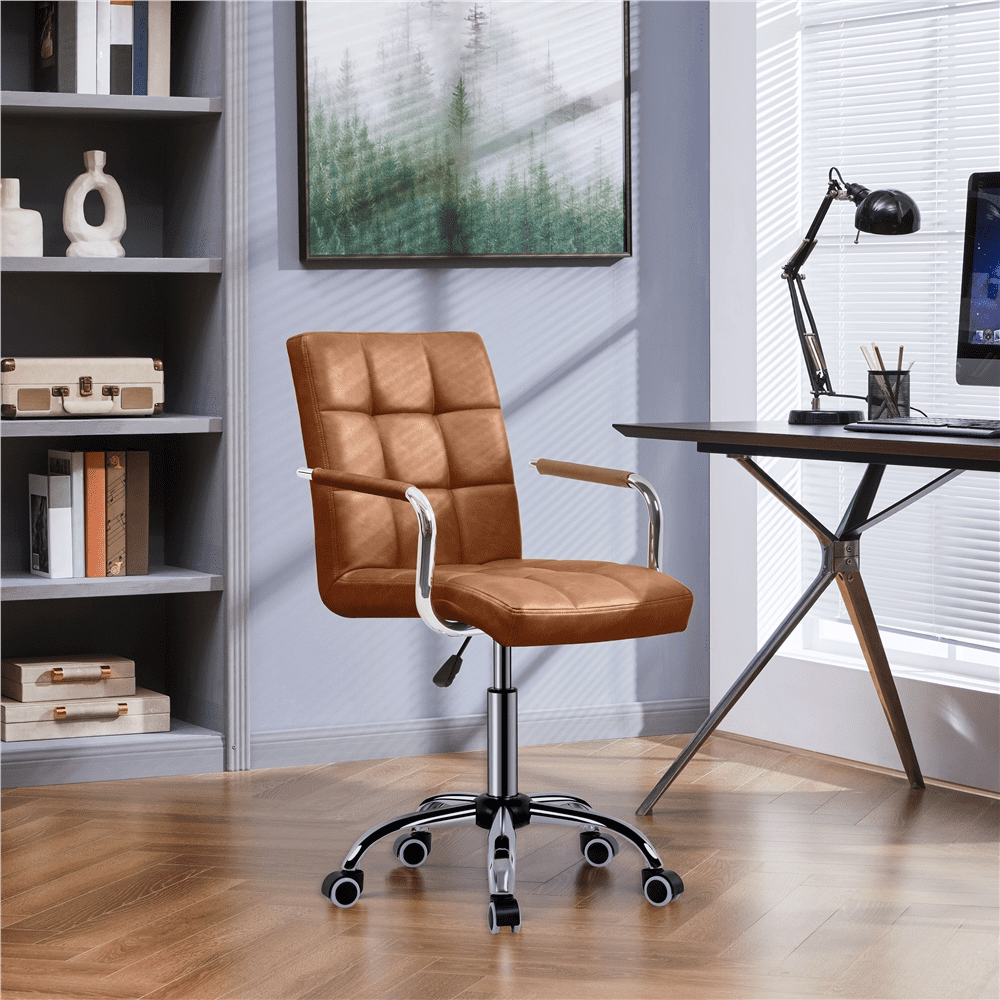 Alden Design Adjustable Faux Leather Mid Back Office Chair with Armrests, Retro Brown