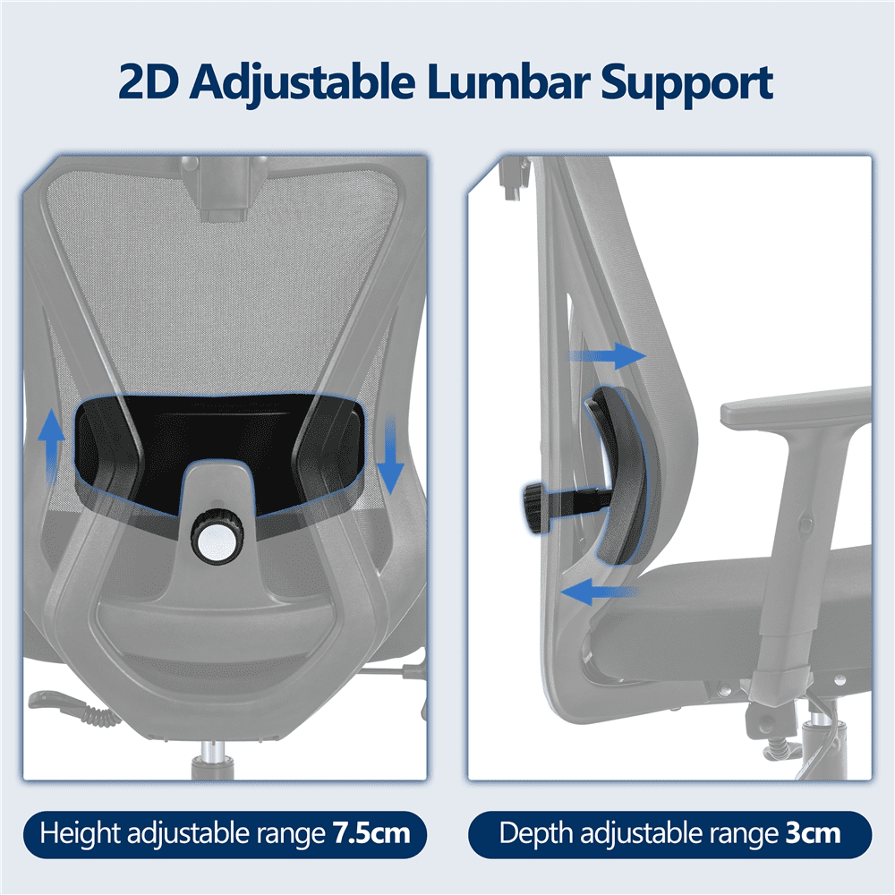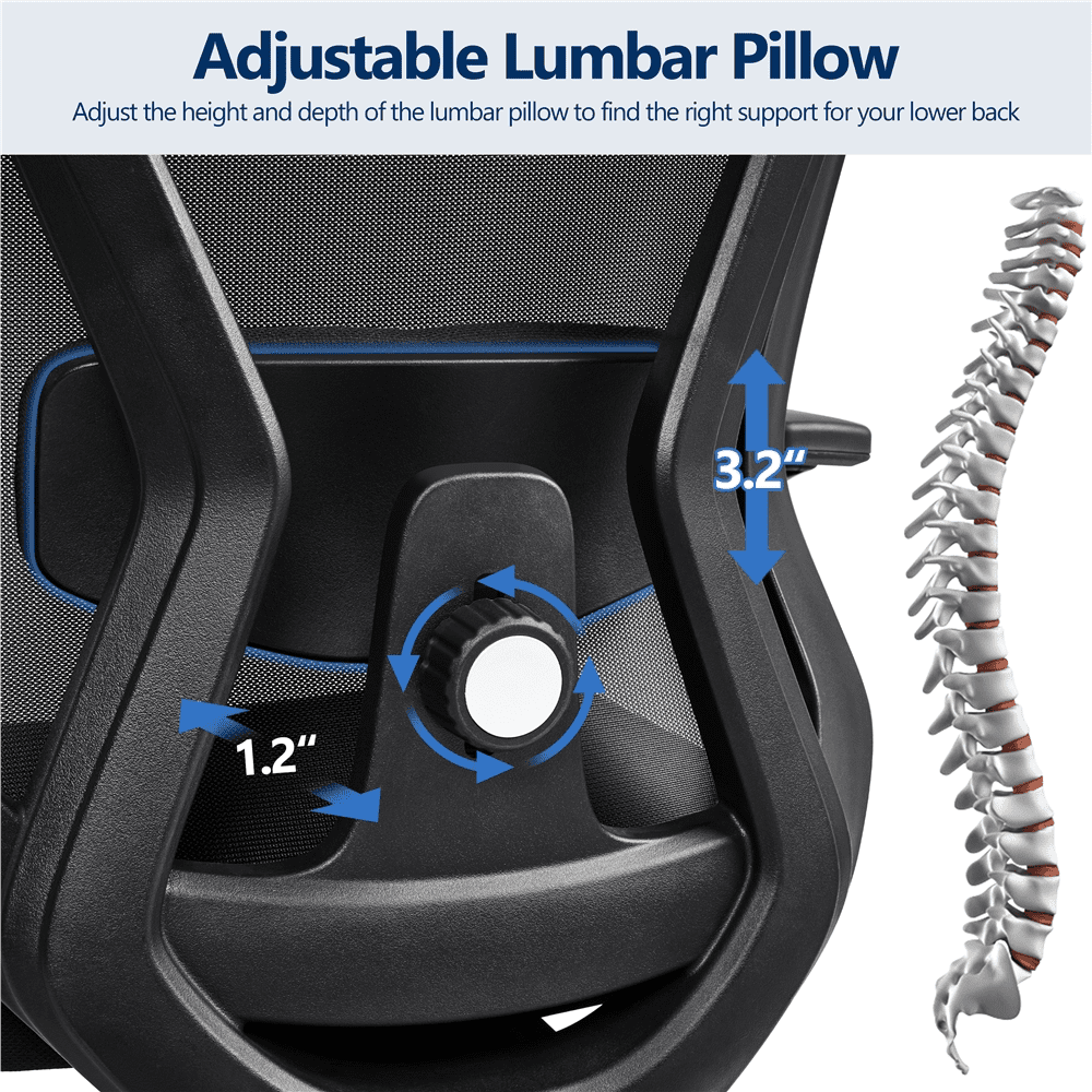 Ergonomically Designed Office Chair: A great series of ergonomic features, such as the multi-adjustable headrest, height adjustable armrests, flexible lumbar pillow, adjustable back tilt angle, and adjustable seat height, provide customized comfort during long hours of work, gaming or other activities. Say goodbye to back stress and stiffness and hello to good posture and improved productivity Large Cushioned Seat & Mesh Back: With its generous 20.5” (W) x 21” (D) and high-elastic foam cushion, this computer desk chair provides adequate cushioned support and relieves fatigue after extended sitting. Plus, the breathable mesh back lets air, body heat, and moisture to freely pass through, keeping you naturally cool Desk Chair with Adjustable Lumbar Cushion: Both the height and depth of the lumbar pillow are adjustable, ensuring that the backrest conforms to the natural curvature of your spine. To take your comfort to the next level, the lumbar support of this executive chair is well padded with 1.18 inches thick high-elastic foam Height-adjustable Armrests: The 7-level height adjustment allows users of varying heights to sit comfortably with their hands on the armrests without feeling fatigued. When the arms are adjusted to their lowest level, the rolling office chair can be pushed under the desk, saving you valuable space Modern High Back Office Chair: This swivel computer chair is thoughtfully designed with an S-shaped back to fit in the curvature of the spine and provide sufficient support to the entire back. The lumbar support can be moved up/down and pushed inwards and outwards to target specific areas of the lower back. Height and angle adjustable headrest helps to reduce neck strain and find your ideal level of support Age Group: Adult