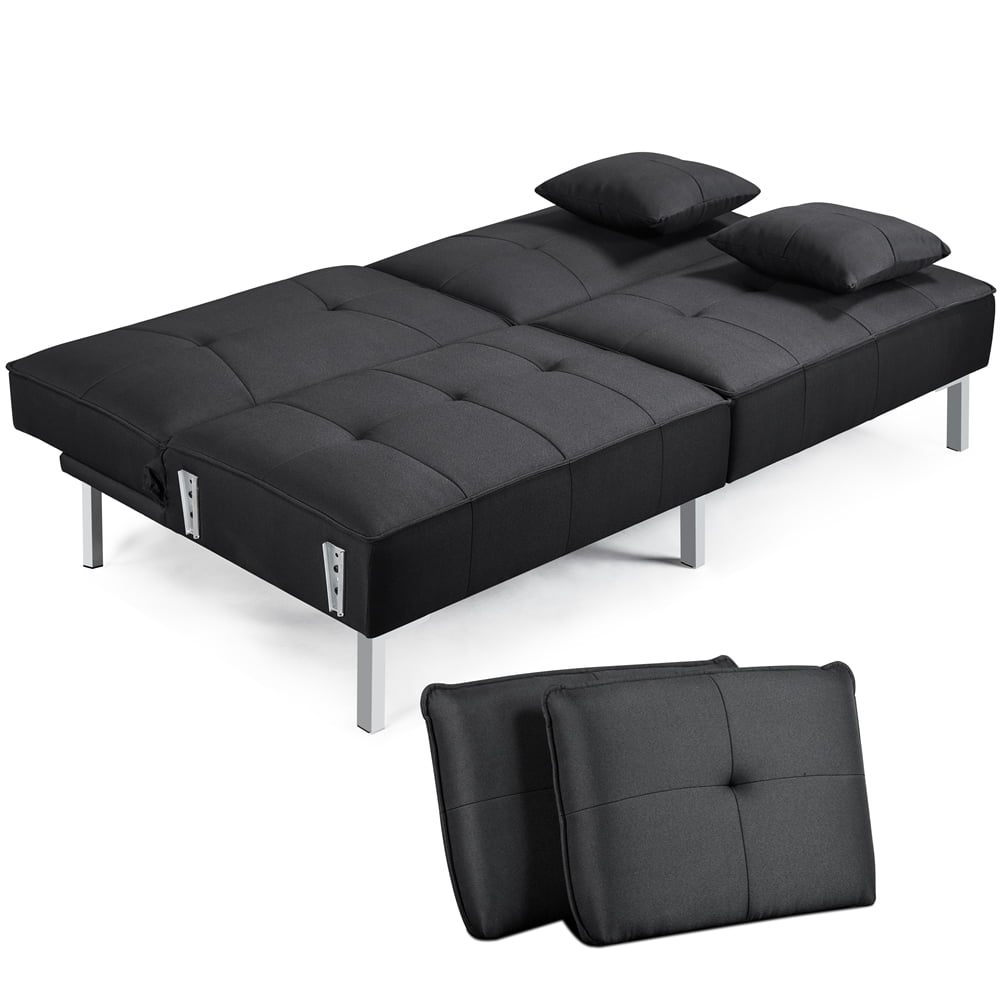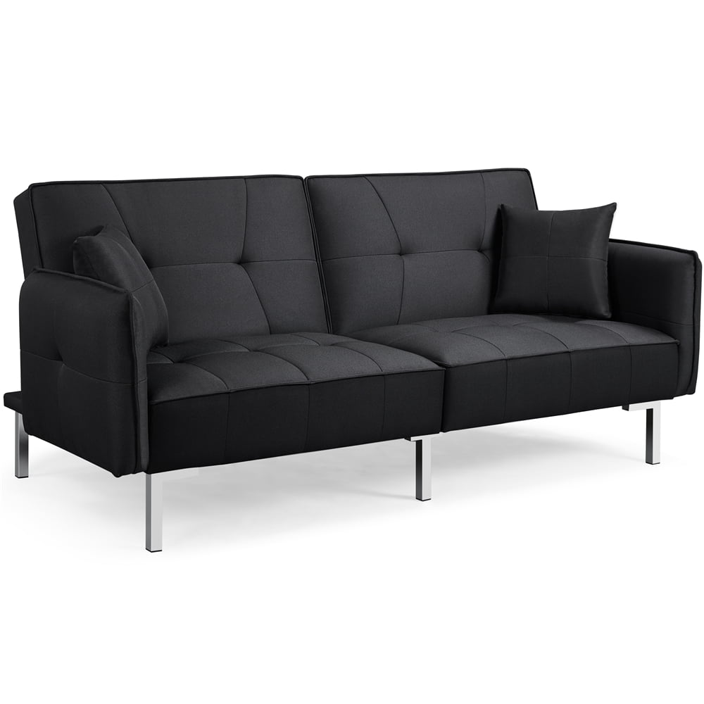 Alden Design Fabric Covered Futon Sofa Bed with Adjustable Backrest, Black