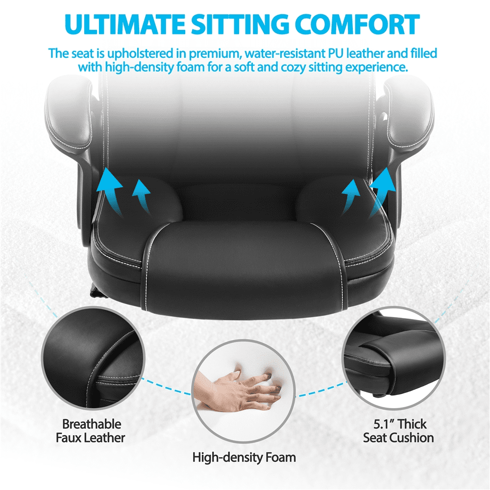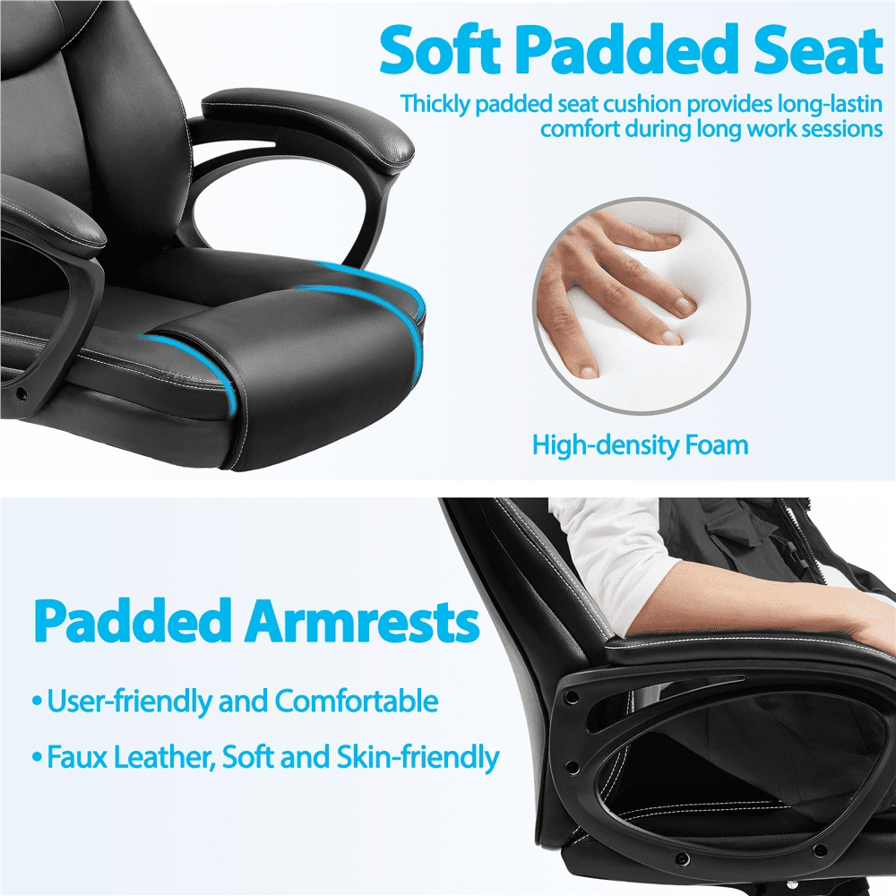 Alden Design Faux Leather Swivel Office Chair with Ergonomic High Back for Home Office, Black