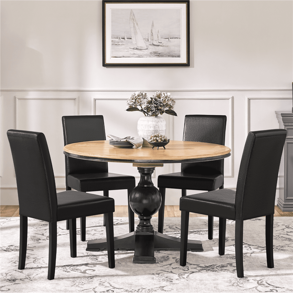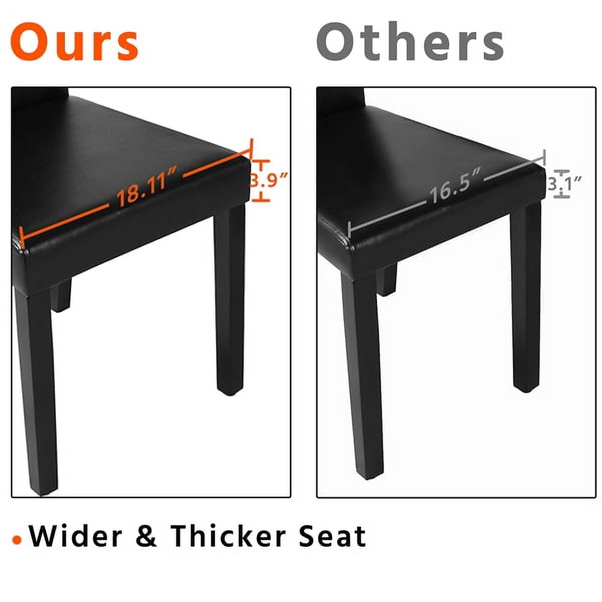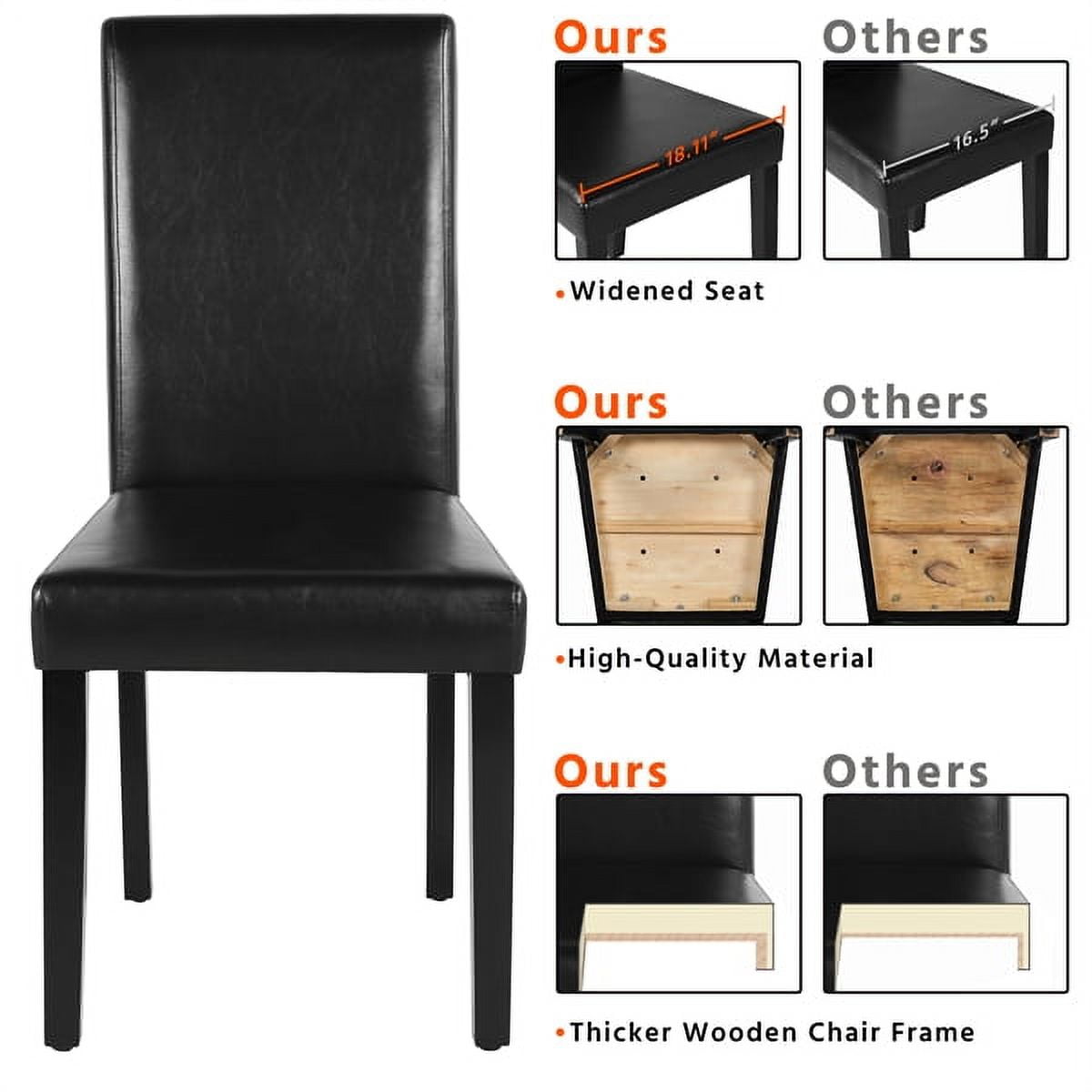Faux leather seat: These modern kitchen chairs have wear-proof faux leather seats, which not only simplifies the cleaning but also increases the texture. It is easy to clean them up and looks high-end with a faux leather surface. High quality: Our dining chairs are made from faux leather, non-woven fabric, composite board, foam, rubberwood, and pine wood. The foam padded seat and high-backed backrest will provide you with much comfort and ease. Set of 4: The dining chairs are sold in 4 pieces together. This would be a perfect match for your dining table. We have different colors for you to choose from. Sturdy & durable: The padded dining chairs are built in a solid structure. Each chair can hold up to 297.6Lb. The overall wooden frame gives you strong support. Specifications: