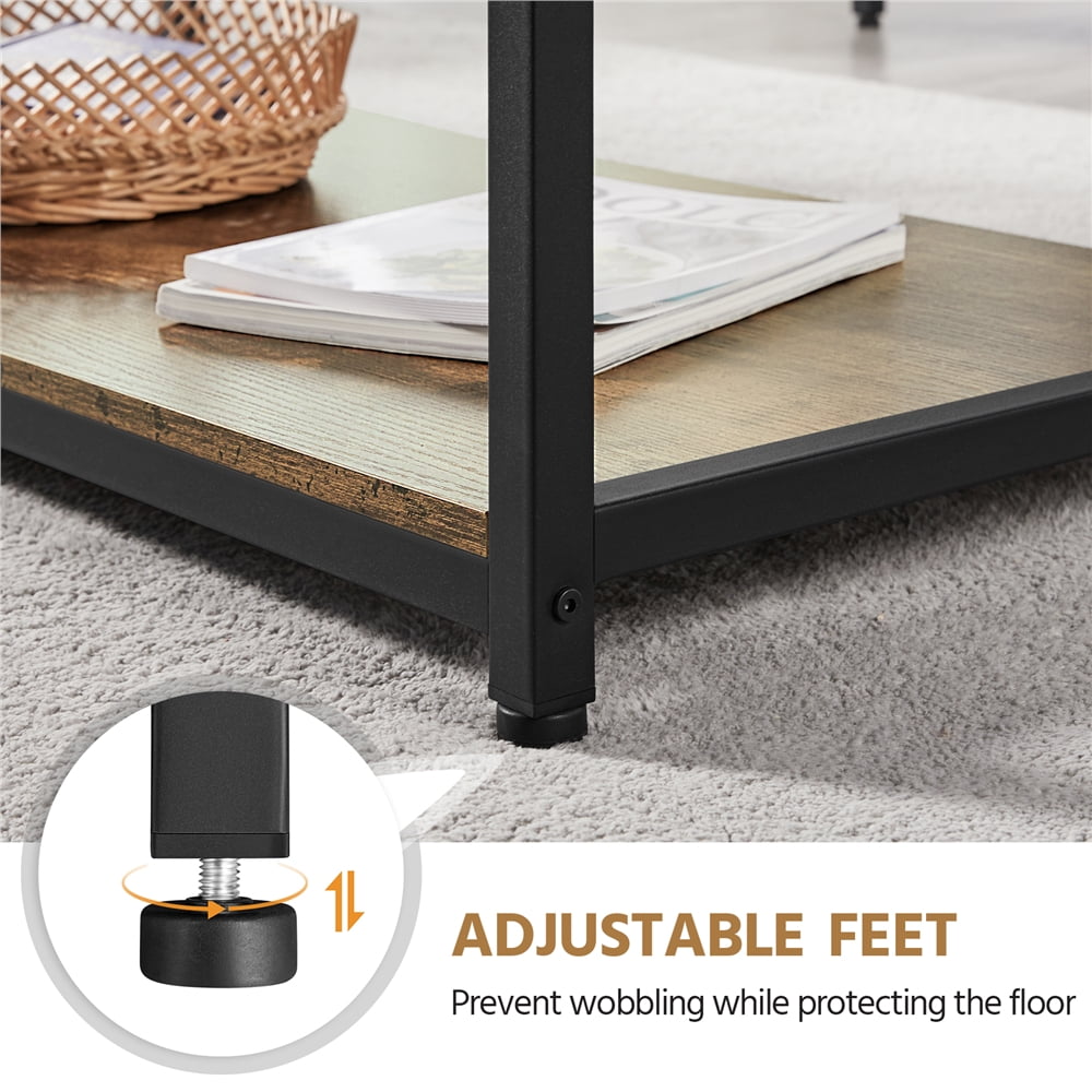 Vintage and Industrial: This modern industrial coffee table features vintage wood grain, simple but stylish, and easy to match up different styles especially those with wood, cabin or industry style. Versatile & Practical: This just the right size storage coffee table is ideal for different spaces to serve your different purposes, such as in the living room, study, kitchen and so on. Easy to Clean: The water-resistant coating on the surface with good durability, making cleaning a breeze. A damp/ dry cloth is all you need to refresh it. Modern & Chic Appearance: Featuring neutral color and smooth texture, this accent coffee table is a wonderful combination of simplicity and modern style, adding a sense of elegant and timeless charm to your room. Specifications: Materials: MDF & Iron; Color: Rustic Brown; Overall Dimensions: 39.5’’ L × 20’’ W × 17.5’’ H; Max Weight Capacity: Desktop: 198 lb; Shelf: 154 lb.